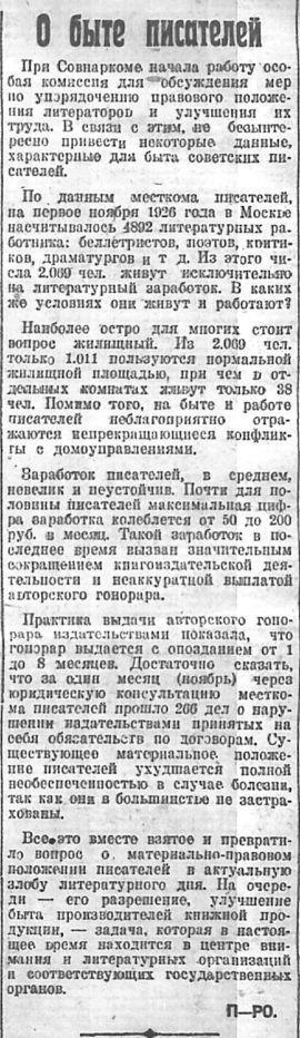 Автор: Валерия ВербининаЗаметка из газеты "Вечерняя Москва" - о том, как жили писатели почти сто лет назад, в 1927 году. Интересно сравнить с нынешним положением - что изменилось, а что практически осталось тем же :)
