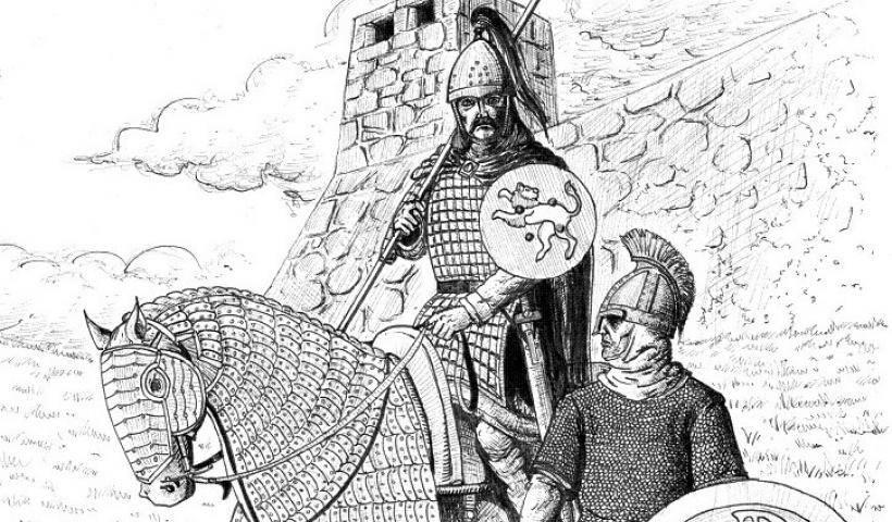 На рисунке ниже трапезундский витязь как бы говорит нам - придётся отдавать супостату родной бурдюк и фундук...