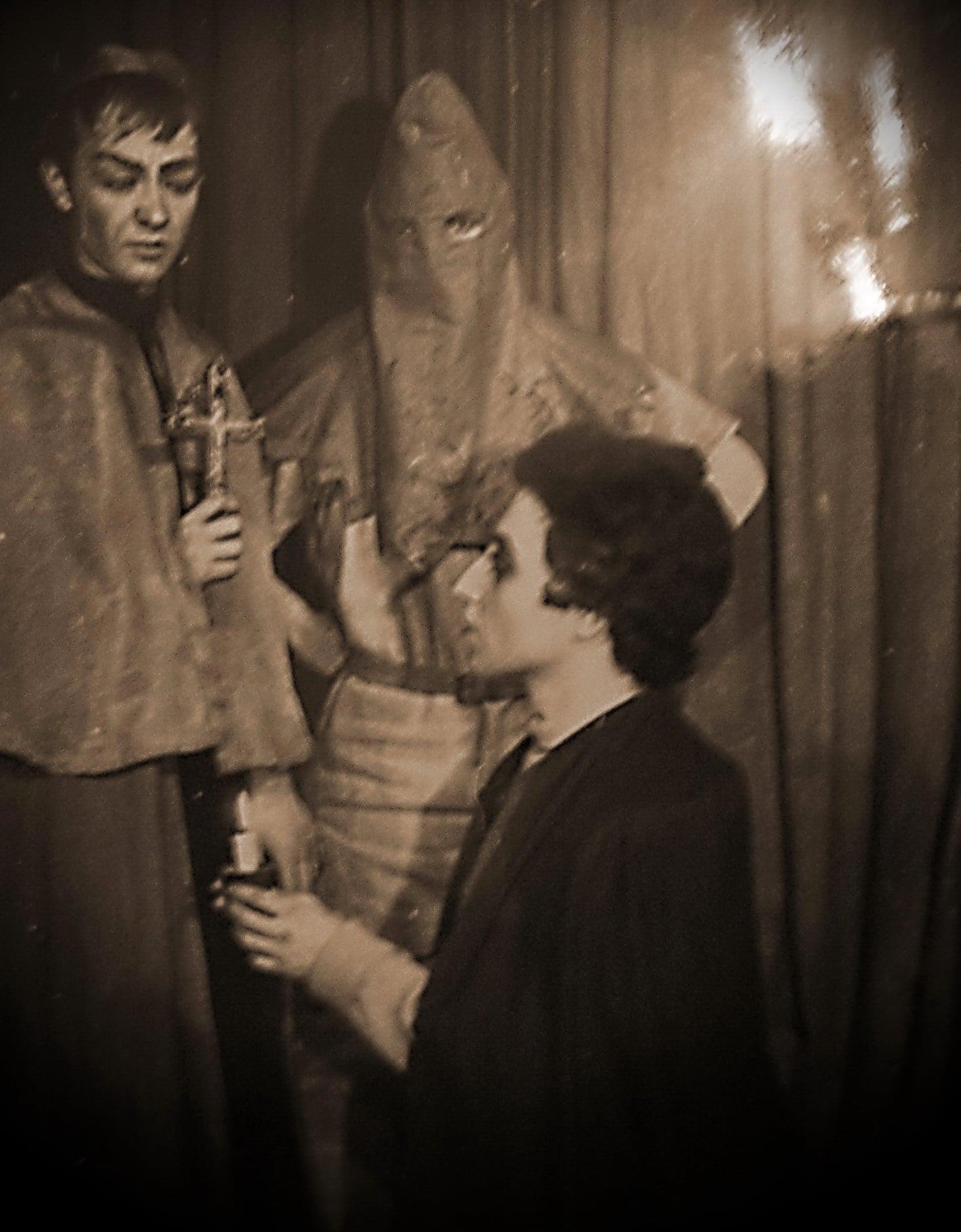 P. S. На фото сцена из спектакля (1984 г.) по пьесе Ю. Эдлиса «Жажда над ручьем». В ролях: Архиепископ (Александр Ключко), Палач (Алексей Захарчук), Франсуа Вийон (Олег Ладыженский).
