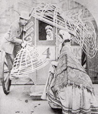 Да, именно так ездили дамы в омнибусах в период рассвета кринолинов)) На эту тему даже карикатуры рисовали