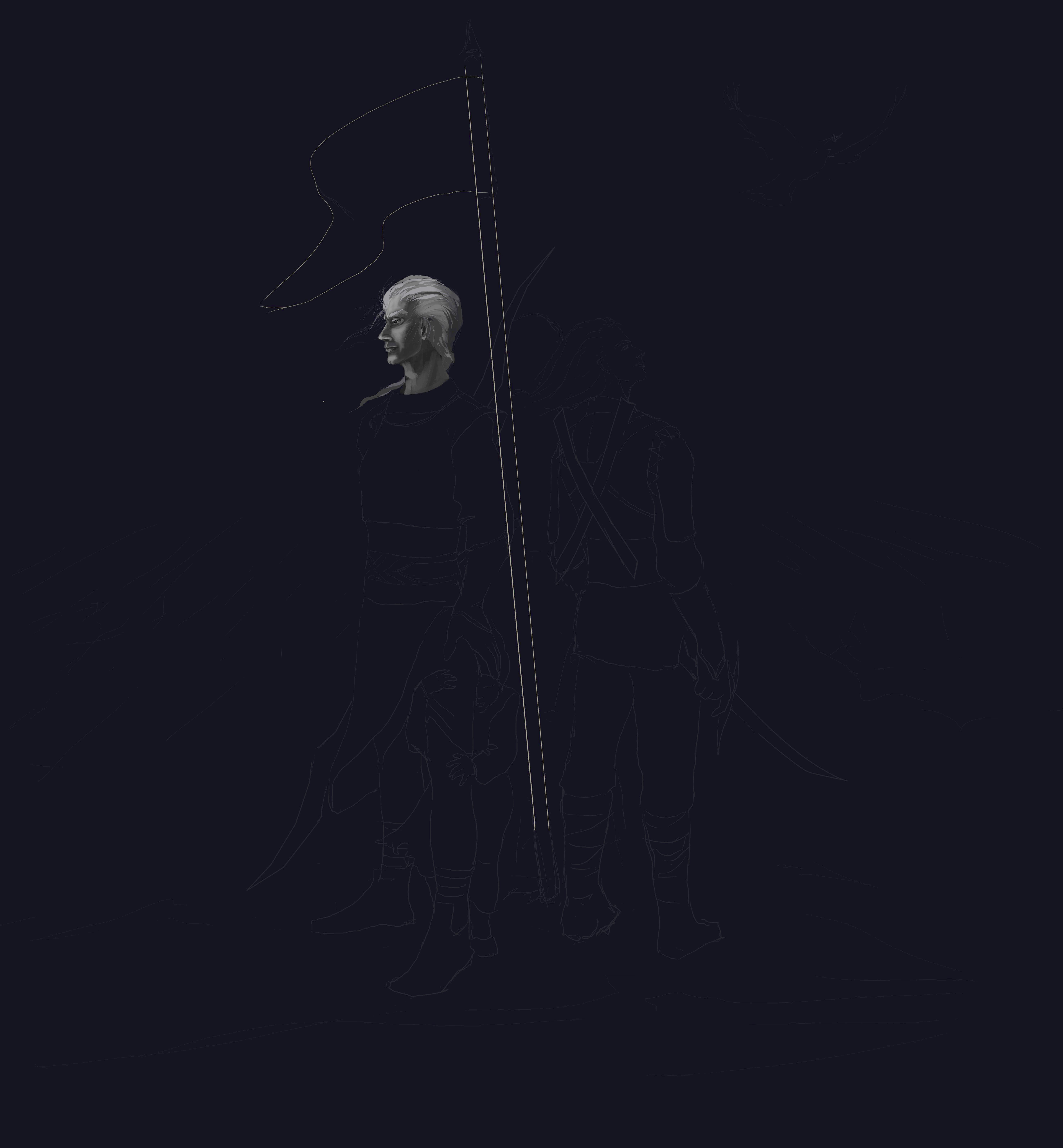 Голова. Мне нравится. Ах, еще штандарт и третий на заднем плане. С флагом история смешная. Рисовали сами на куске ткани, как и крепили к флагштоку.