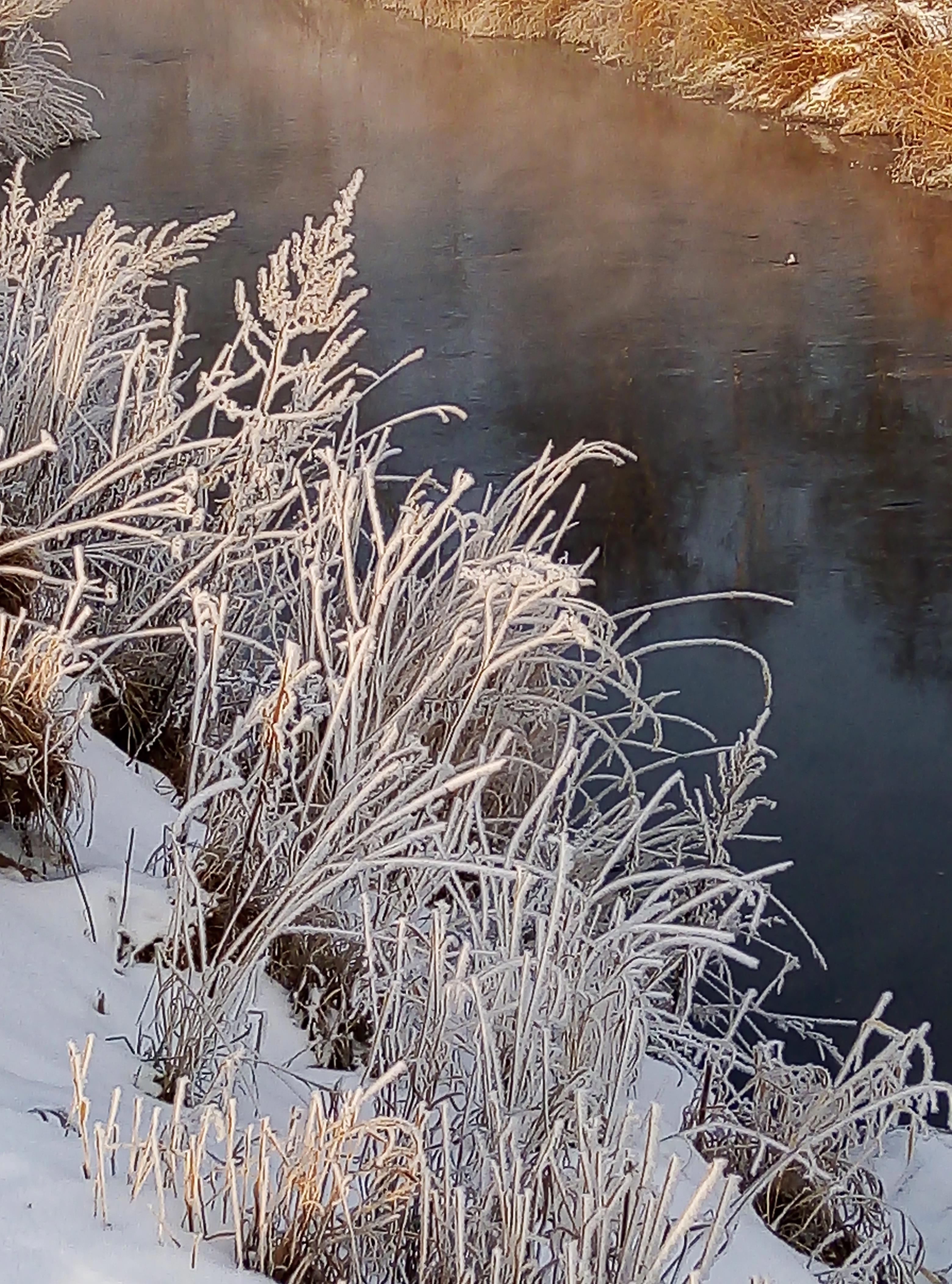 Река Славянка - приток Невы. Вода парит. Утки так и не улетели. Привыкли к тёплым зимам. А в этом году мороз крепчает день ото дня. Скоро обещают -18-20. Это, конечно, не -40-44 как в 90-ые, но с непривычки тоже не сахар.