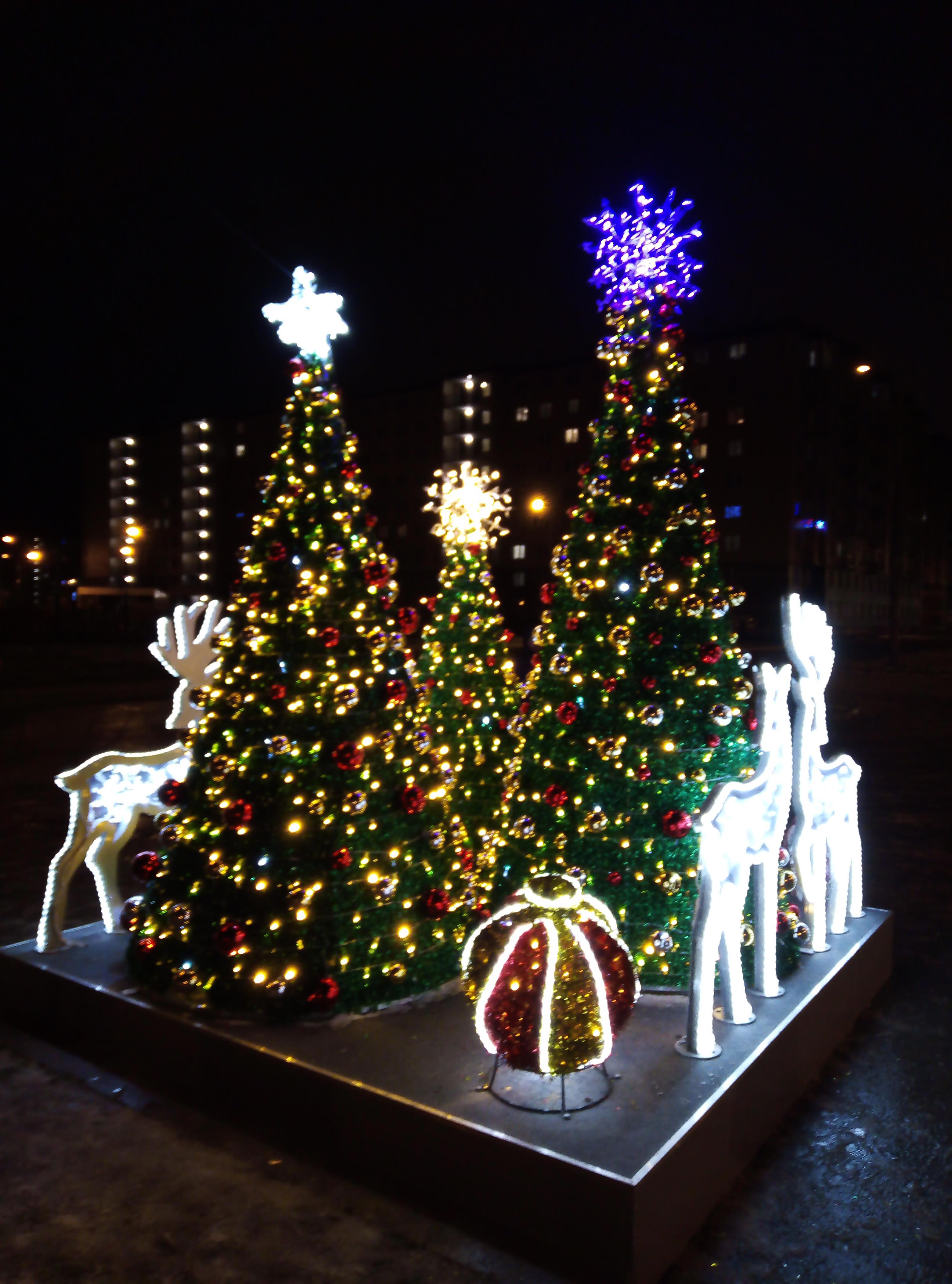 Эта милая новогодняя инсталляция стоит на кольце автобусов в нашем районе.