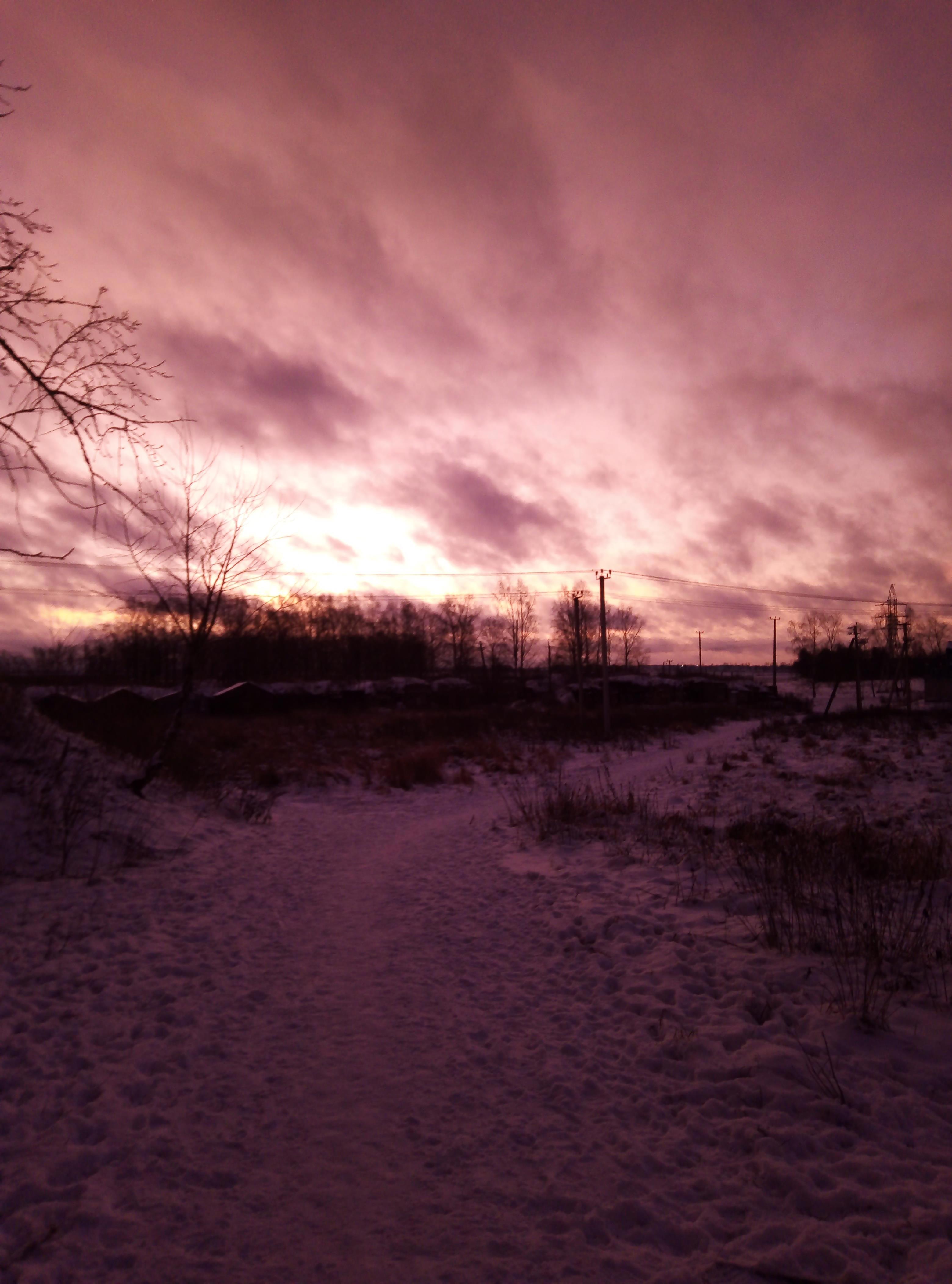 Вот такое странное малиновое утро было незадолго перед Новым годом. Снято без всяких фильтров. Фото не обработано.