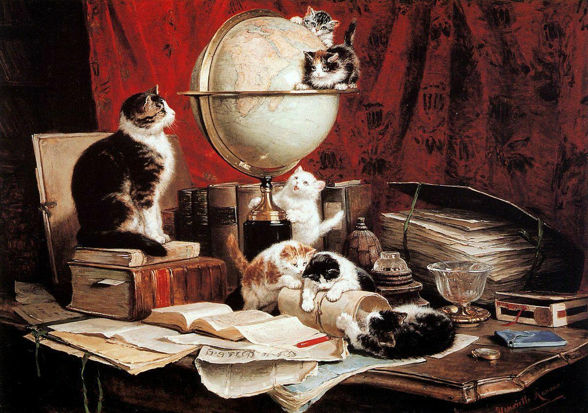 Котята, мявкнув от души, скорей залезли на Экватор, искать Париж и Улан-Батор, Марсель, Сицилию... Пномпень! Им так играть совсем не лень!