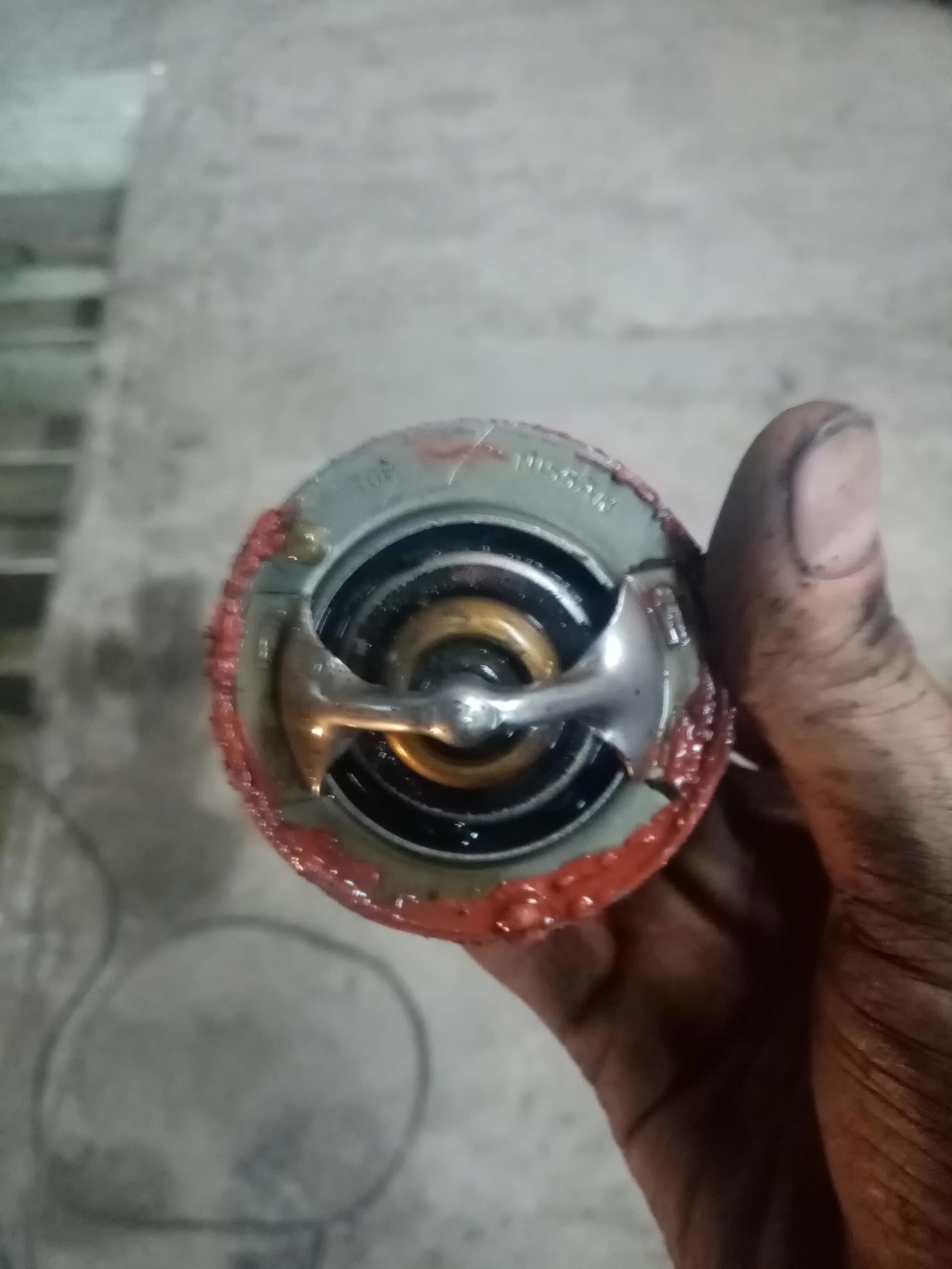 Старый термостат был намертво приклеен на красный герметик. На вид как живой, только не живой.
