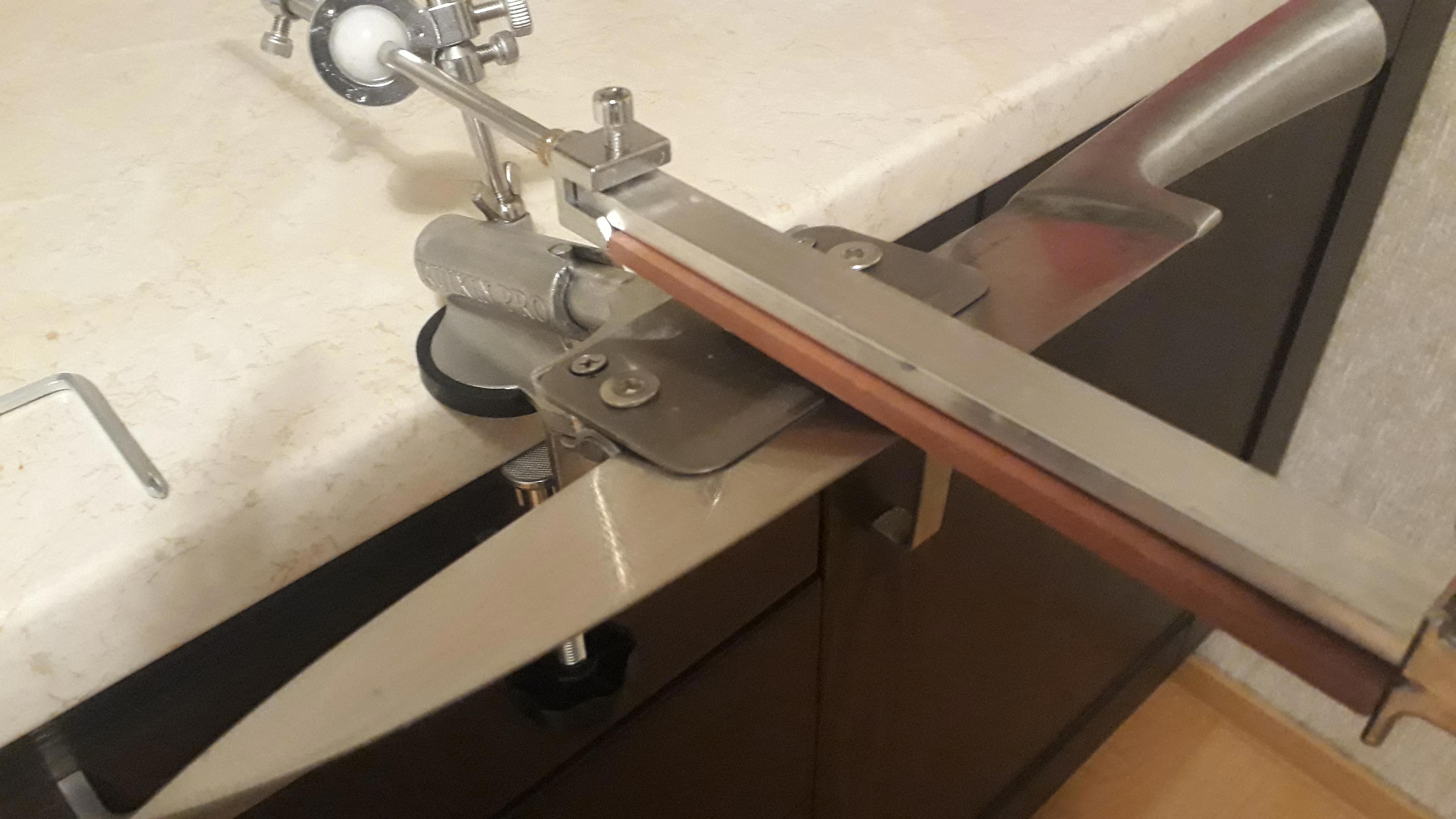 Сложность при заточке как раз в соблюдении выбранных установок, так какчеловеческие руки мышечную память приобретают не сразу, и как не крути – станок есть станок. И вот мы собственно к нему и подошли, не удержался, заказал. Был у меня когда-то Lansky (ну очень маленький, саблю в несколько приемов придется точить) теперь такой. Необходимо отметить, что без станка без опыта, есть тенденция угол заточки инстинктивно занижать интуитивно надеясь, что так будет острее. А это не всегда хорошо.