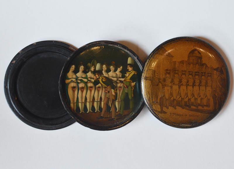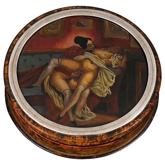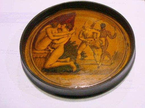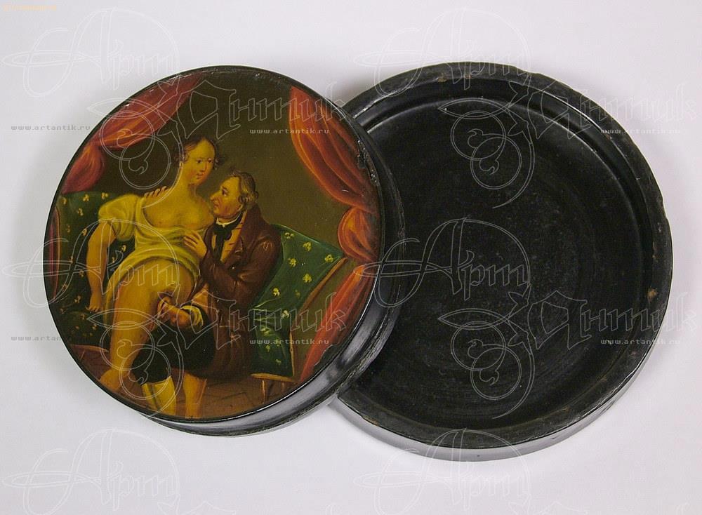 Чем дешевле были табакерки, тем проще были картинки, украшавшие их, а чем дальше по времени (имеется ввиду года изготовления), тем более порнографичные.