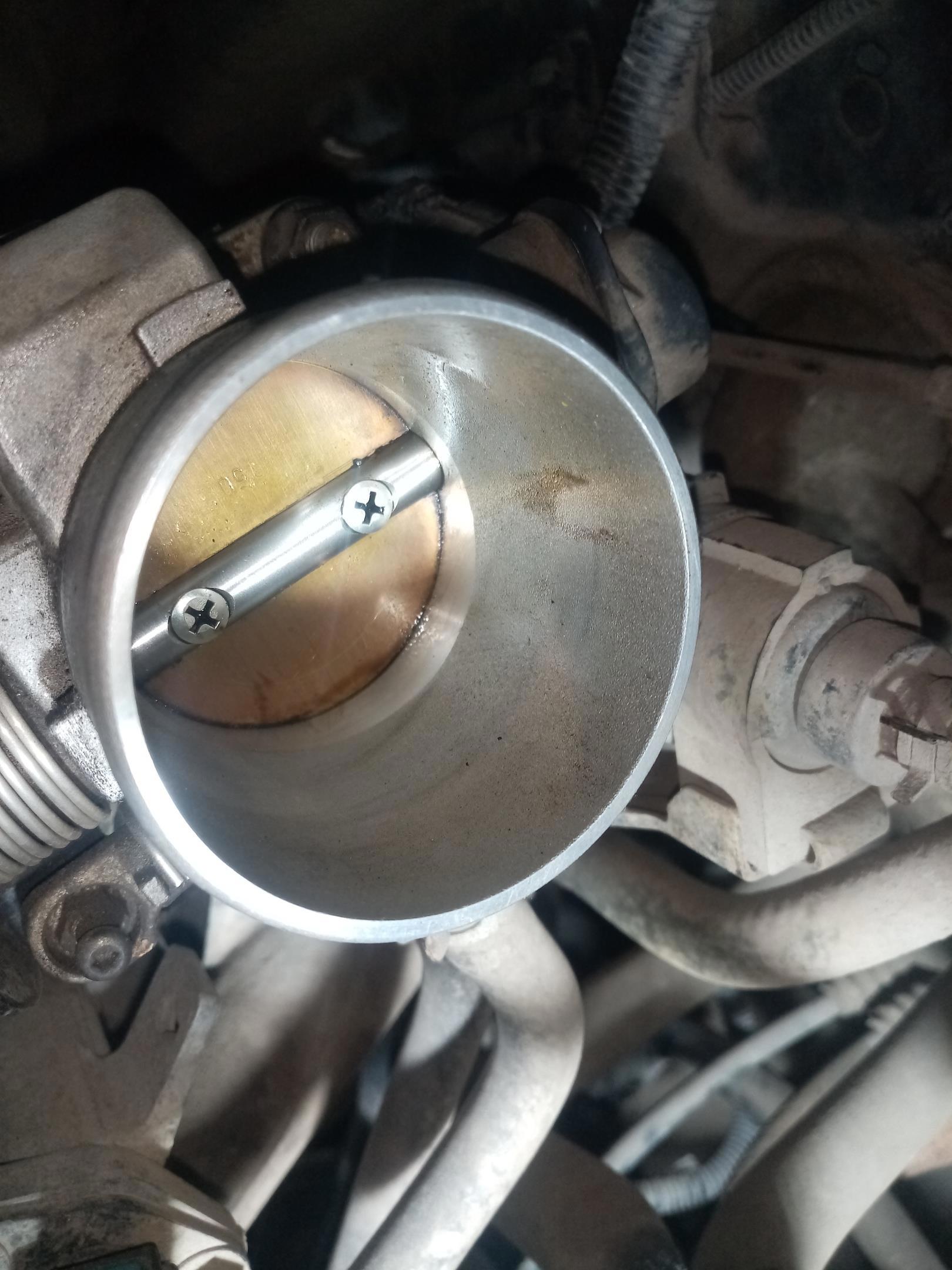 Вот эта загогулина - это слив. Я его прочистил, это - дальний, который около второго штуцера, идущего в патрубок перед дросселем. А до этого слива ещё перегородка с сеткой. Тоесть да, там скапливалось масло, и его выдувало во впуск. Вот вам и масложор по ведру на километр. Хоть я и был скептически настроен, но вот такой подставы от инженегров я не ожидал! Всё ж не все в интернете дураки. =))) Дальше было интереснее. Всё это я собрал, думаю надо дроссель помыть. Вот тут-то я и офигел по настоящему.