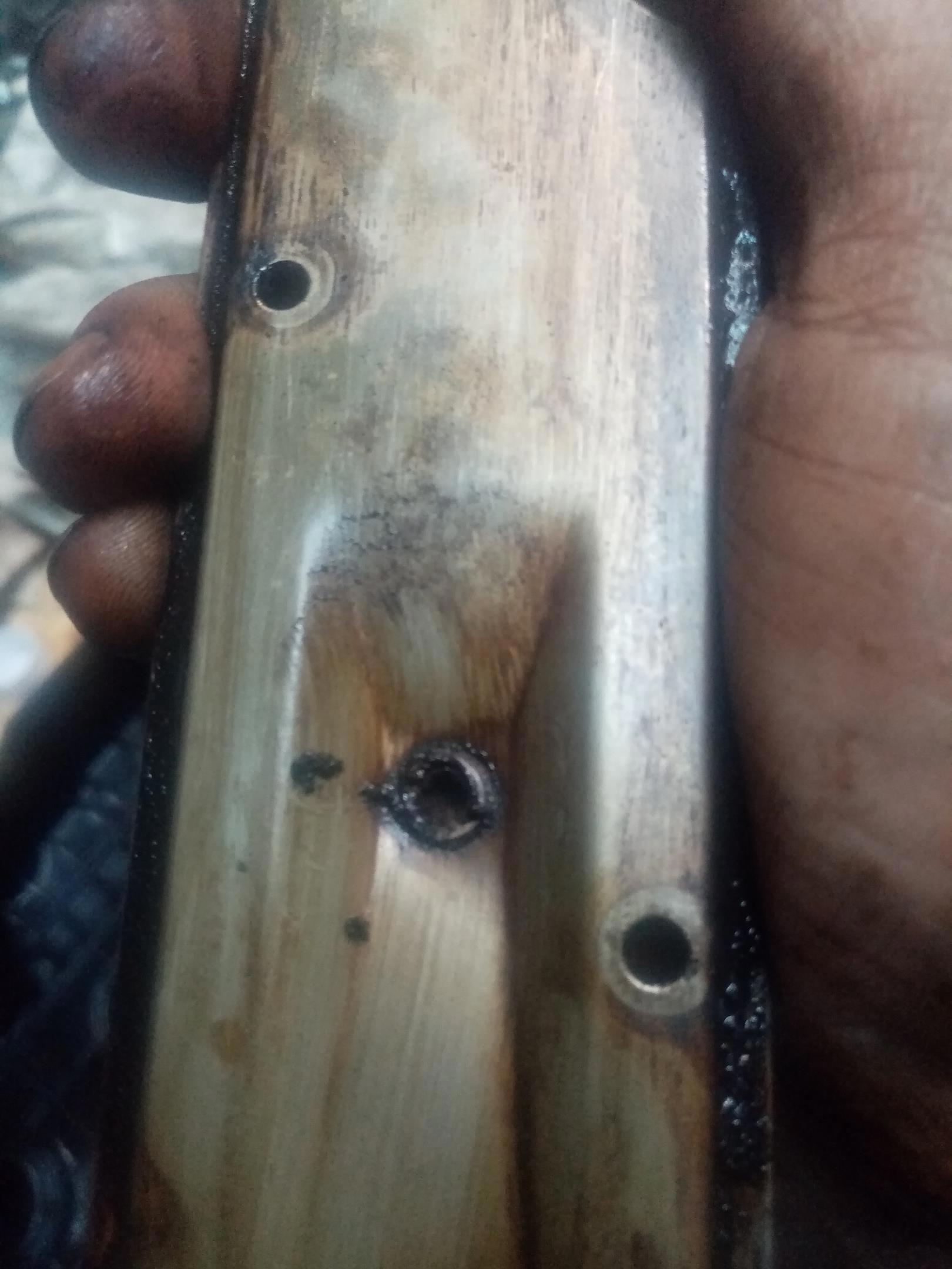 Видно нагар. Начинаю проковыривать, с трудом пробил его куском алюминиевой проволки. Результат: