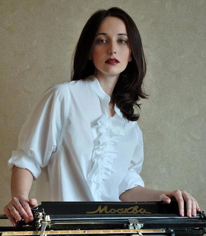 Фотограф и стилист встретили меня на автобусной остановке, и мы пошли в студию. В студии – квартире девушки фотографа – были нарядные розовые обои. В качестве реквизита фотограф решила использовать печатную машинку “Москва”. Я не печатаю книги на машинке, но по сравнению с шариковой ручкой – это был прогресс, не правда ли?