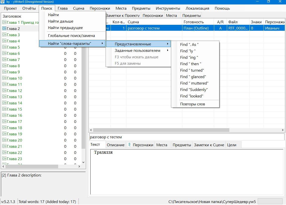 Есть и другие приятности у программы. Например, отслеживать слова-паразиты или вести подсчет использованных слов (программа изначально англоязычная, но дает возможности маневра):