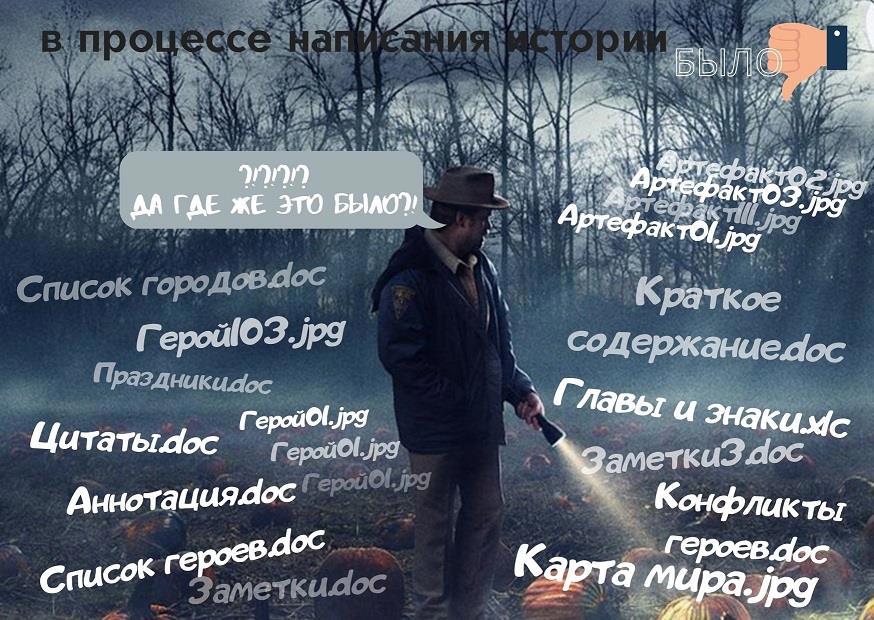 Ведь если история чуть сложнее школьного сочинения, то приходится помнить много нужной информации – от имен (полных, коротких, прозвищ) всех героев, их внешности и предысторий, кто кому приходится, какие артефакты, термины «местного» языка или «богов» и пр. и зачем и где упоминали и тд. Раньше для этих нужд приходилось заводить еще много дополнительных файлов и как-то в них не путаться.
