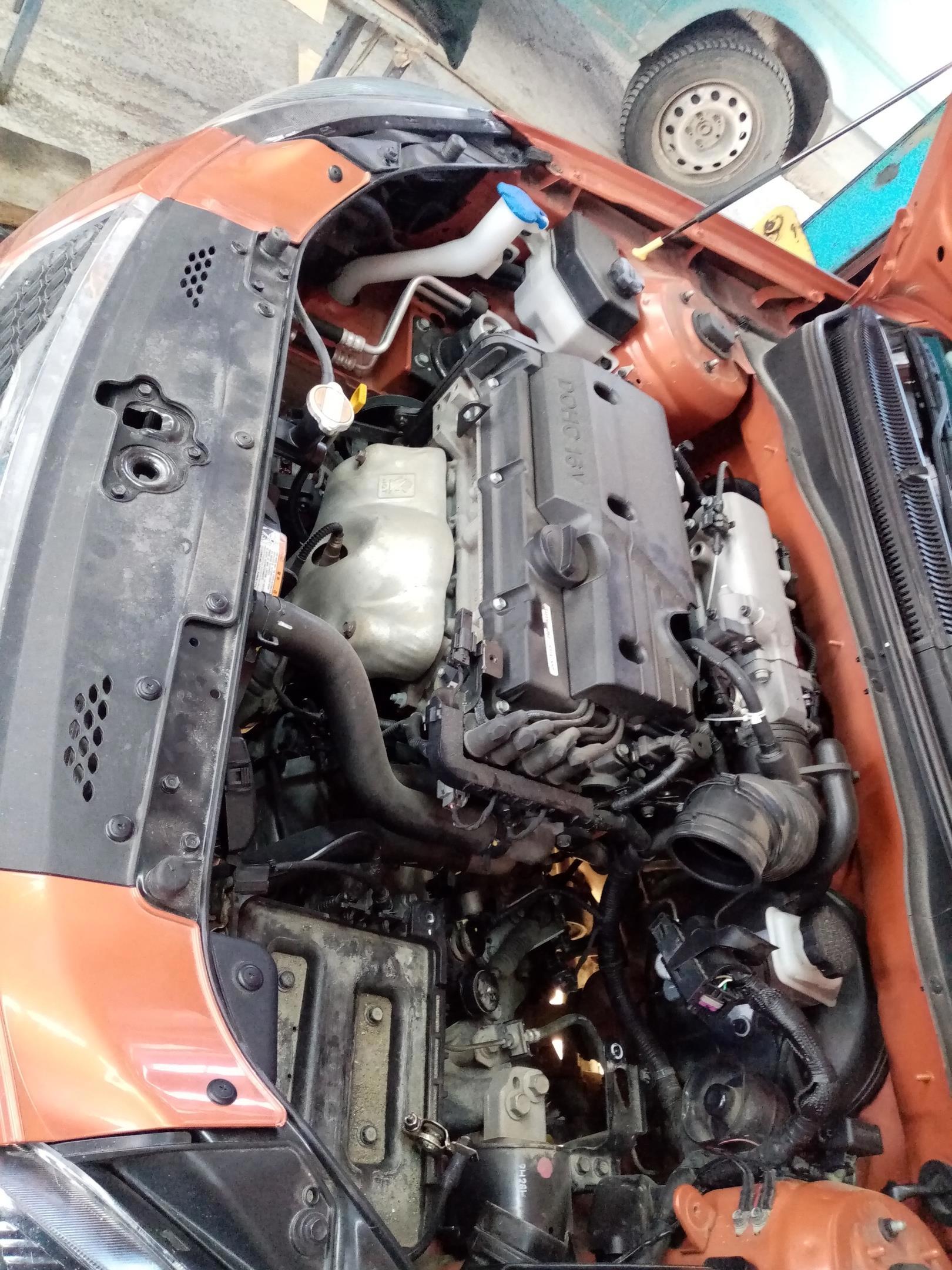 Подкапотное пространство. Ещё не всё собрано.... =) Но можно увидеть, что там чисто. На моторе нет подтёков масла, и видно что пыль старая - подкапотка не мылась. Все пластиковые пистоны одинаковые и на месте, все болты родные и на месте.