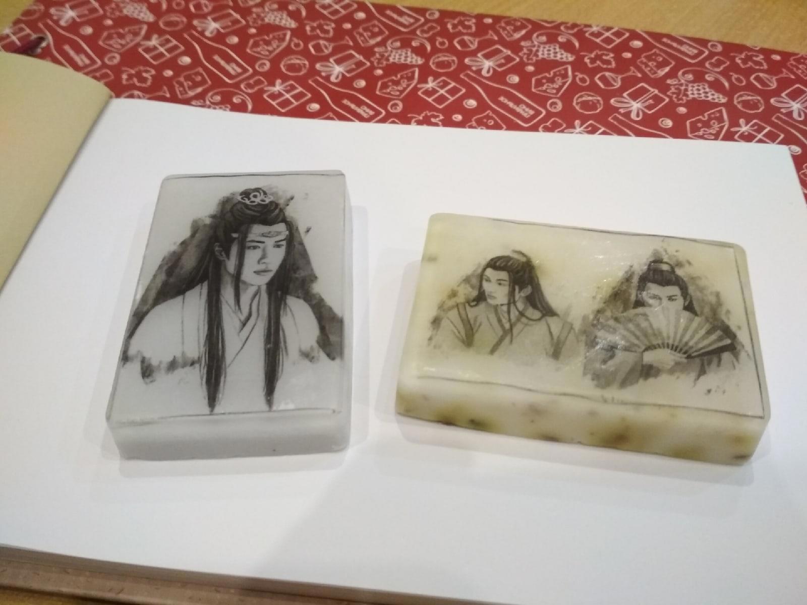 И самое главное! Я орала и прыгала до небес! МЫЛО с принтом из моих артов!!!! Я теперь не знаю, чего хочу больше. То ли воспользоваться им, то ли сохранить на веки вечные! Но только одна мысль, что я намыливаюсь Лань Чжанем заставляет