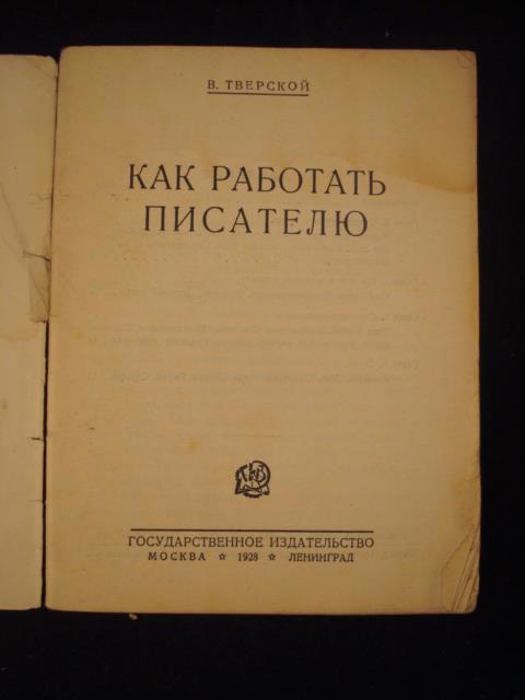 Тверской В. «Как работать писателю». М.-Л. Госиздат 1928 г.