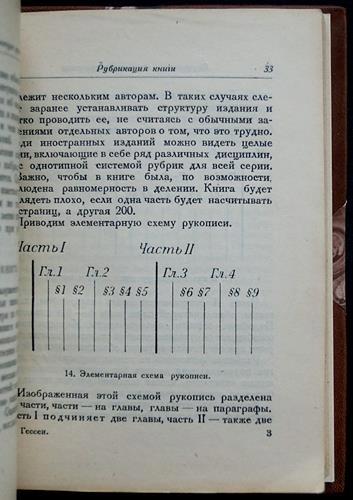 Очень много полезной информации – начиная от кратких сведений по наборному делу, внутренней и внешней структуре рукописи. Подробное описание графического материала, а также корректуры - общие правила, корректурные знаки, и т.п. В Приложении: Инструкции для авторов Госиздата, Международные символы, Технико-орфографические правила, Главнейшие способы рубрикации, указатель терминов и т.п.