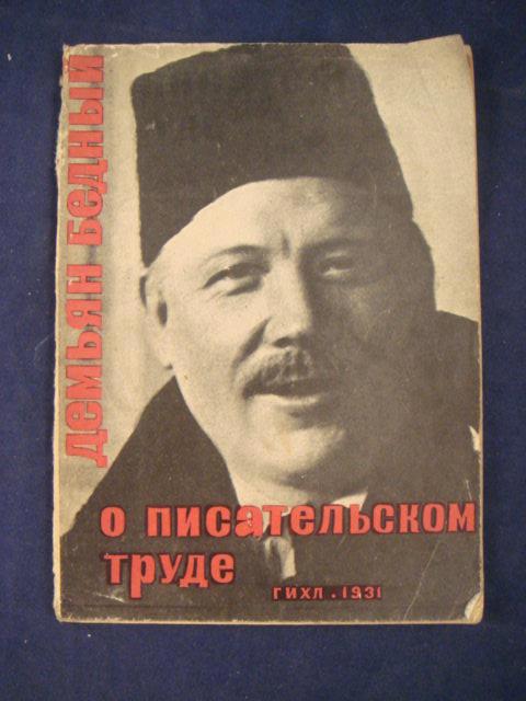 В 1931 году, по стопам «буревестника революции» Горького выступит еще один тогда очень известный и влиятельный литератор – Демьян Бедный. У него в Государственной издательстве художественной литературы (ГИХЛ) выйдет на 62-х страницах брошюра «О писательском труде», выйдет в серии «Массовая Критическая Библиотека “На литературном посту”».