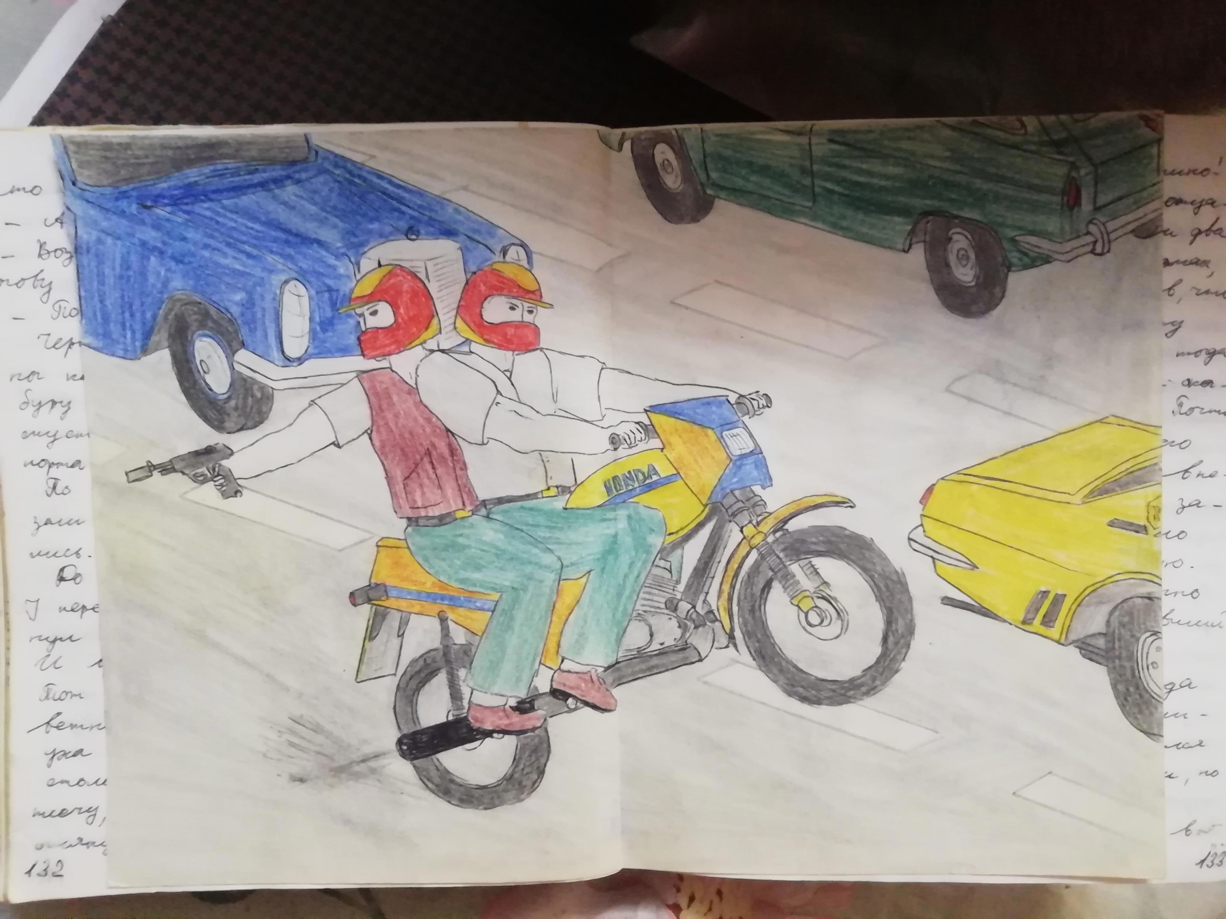 У меня оно начиналось вот так. Романы, причём с иллюстрациями. Тетрадки на 96 листов, и все от руки. Какой комп в конце 80-х? Что странно, первая, вторая и четвёртая оказались под рукой:
