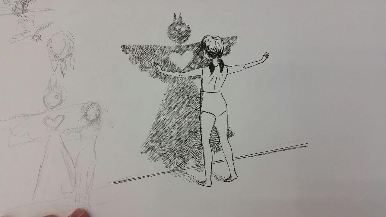 2. Нарисовать внутреннего зверя. Ну такой он у меня)) Я специально оставляла слева наброски - это важно, чтобы проверяющие видели весь процесс.