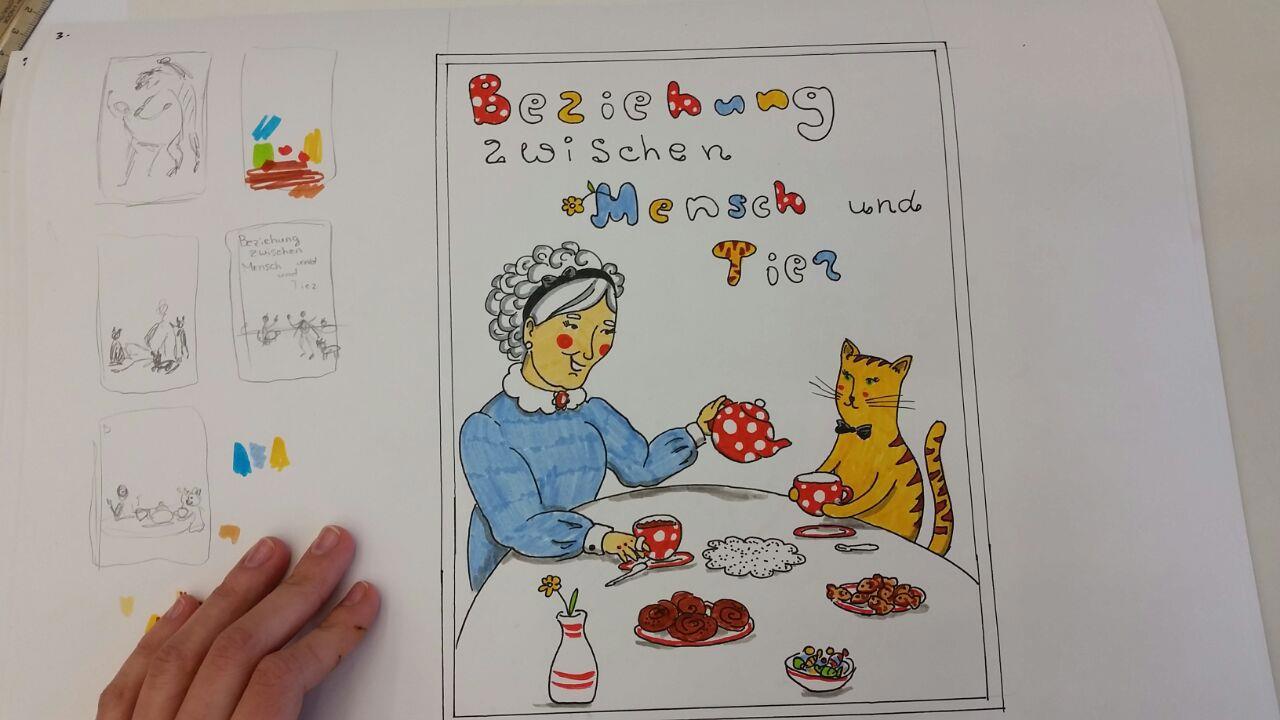3. Нарисовать плакат к выставке "Отношения между человеком и животным". Я тогда не представляла себе, что такое плакат вообще)) поэтому нарисовала просто рисунок.