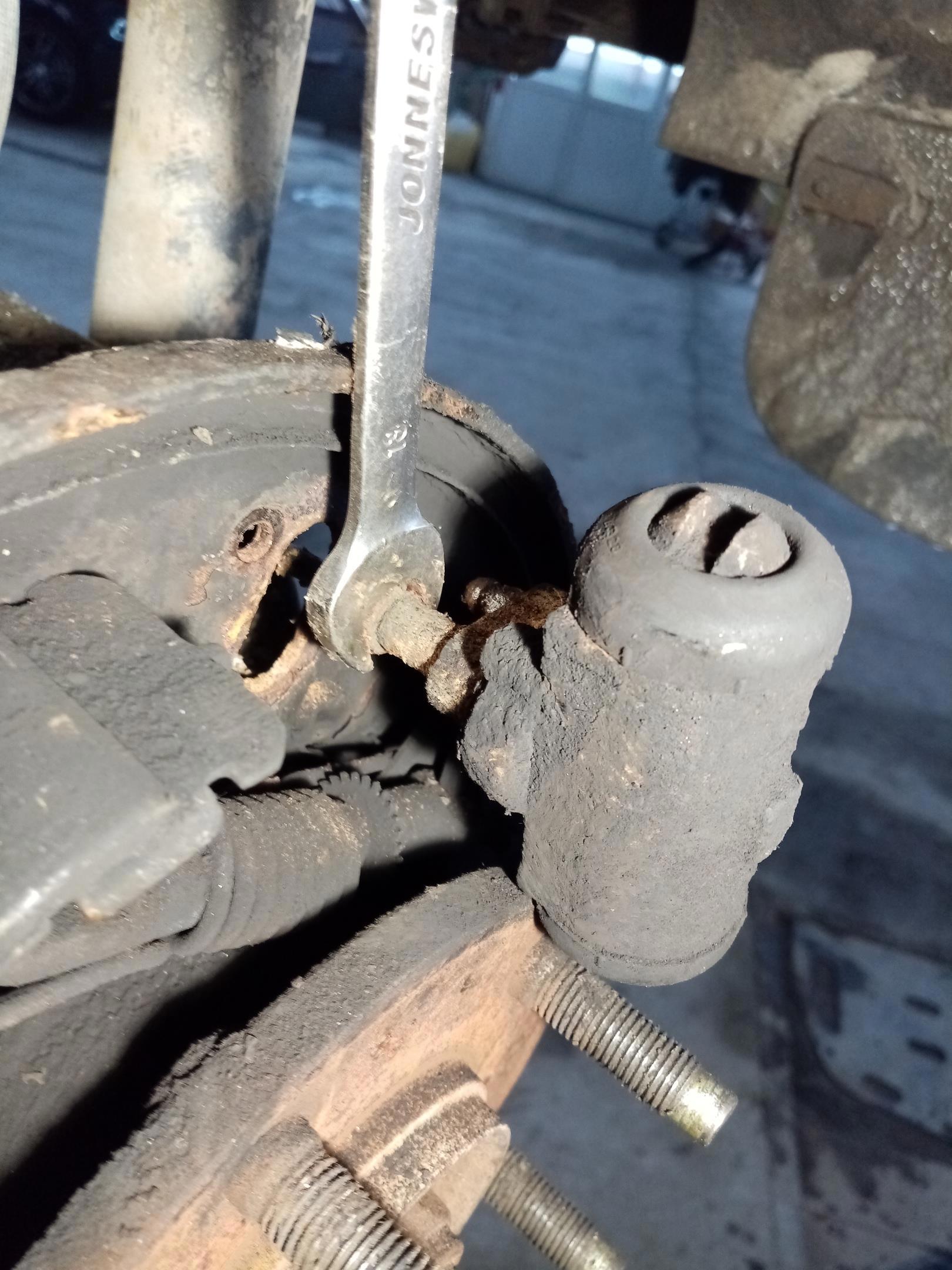 Это не была бы Мазда, еслиб всё было хорошо! Гайка на тормозной трубке прилипла к трубке, и не хотела на ней крутиться. Возиться с этой фигнёй мне было откровенно лениво, поэтому я вытащил цилиндр, и просто выкрутил его с трубки, закрутив потом новый. Можно это исправить, но я б лучше заменил трубки. Да, трубки, с правой стороны ситуация была такая же.