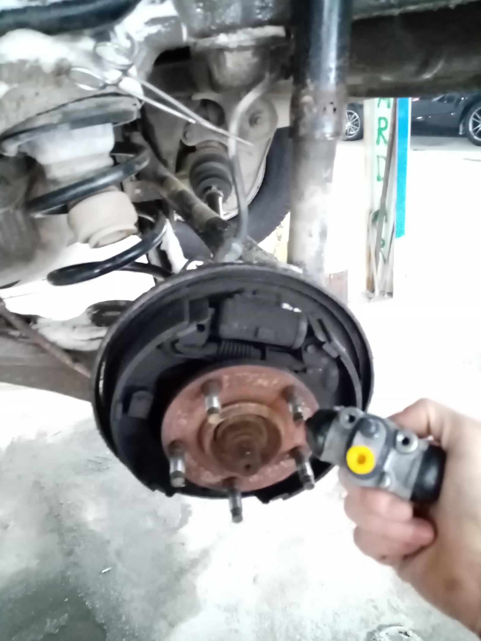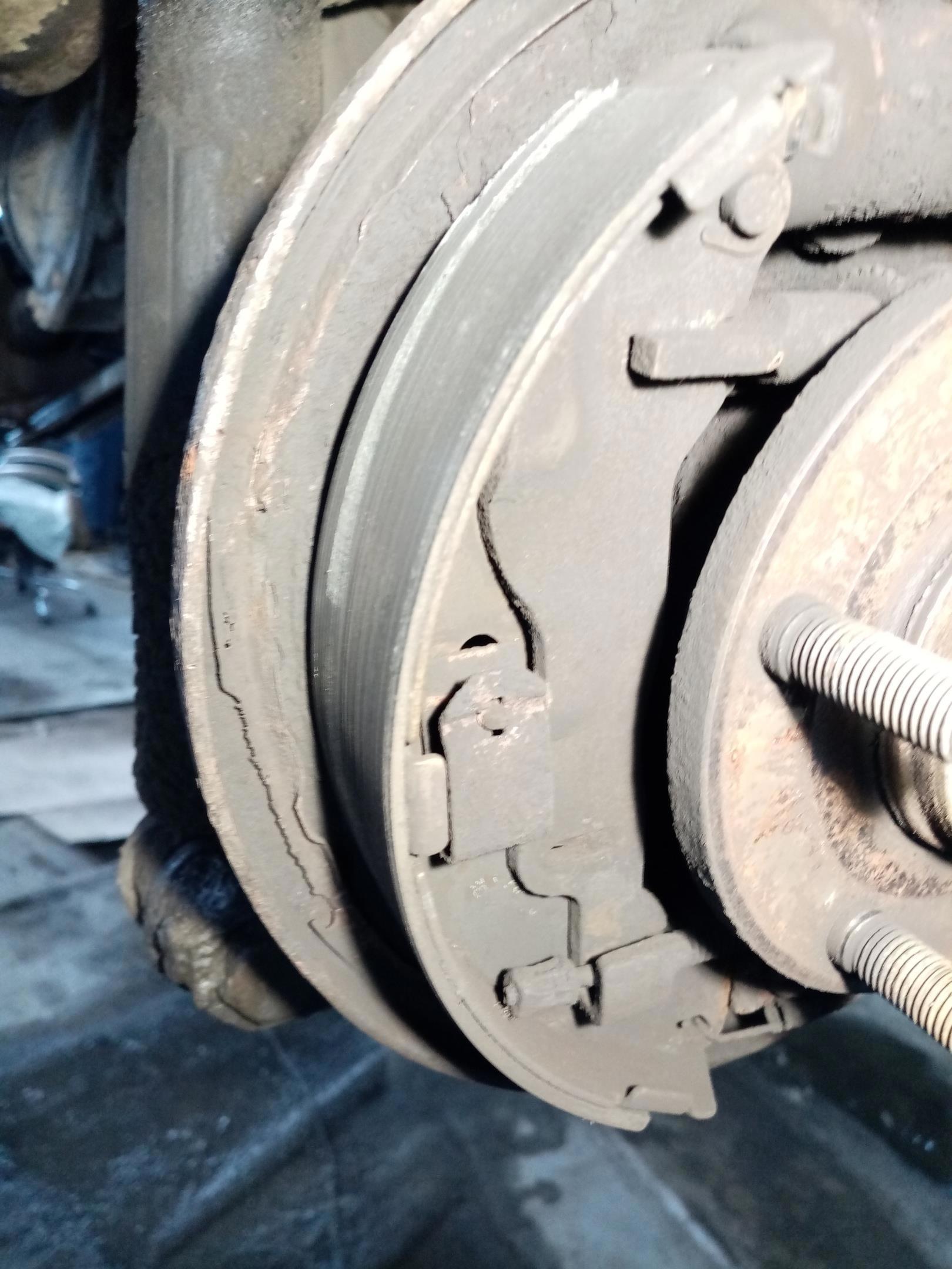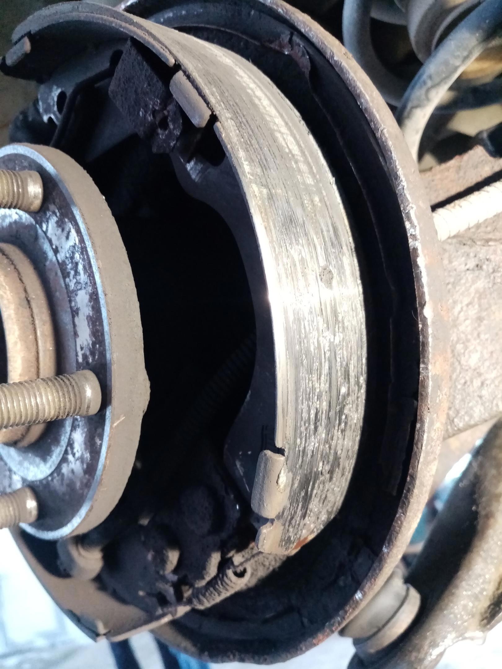 А потом у меня была Mazda Tribute. Да, та самая. У владельца недавно при поездке в Челябу лопнул тормозной шланг на левом переднем колесе, делал в Челябе, и там ему не смогли нормально прокачать тормоза, потому что слева сзади штуцер не отворачивался, а справа сзади был сломан. По большому счету им это и не надо было, но да ладно. Владелец купил два задних цилиндра, и правый передний шланг, на всякий случай. Спереди то проблем небыло, всё заменилось штатно: снял поставил. А вот сзади начались приключения: слева барабан слетел как к себе домой. Вообще барабанные тормоза не хуже дисковых, когда они исправны, ибо площадь колодок значительно больше, плюс перегреть барабан сложнее. Но есть одно жирное "но": изношенные барабанные тормоза это большая боль при обслуживании. Так вот, левый барабан снялся сам, потому что колодки в нём были не отрегулированы, и почти не изношены как колодки, так и небольшая выработка на барабане, которая при нормально отрегулированных колодках цепляется за них и не даёт сдернуть барабан.