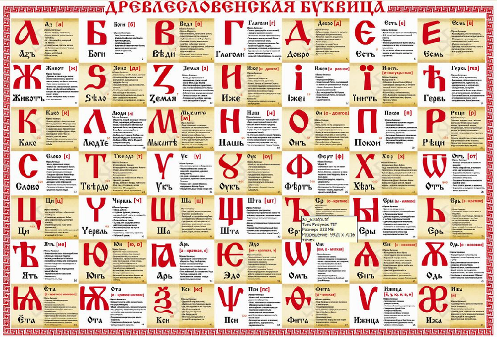 Я сейчас не буду говорить о Славянских рунах, Х*Арийской Каруне, Глаголице и другой письменности Славяно-Ариев. Поговорим о Древнесловенской Буквице, состоявшей из 49 букв, каждая из которых несла образ и сакральный смысл. Различные события вносили свои коррективы в Буквицу и, в конце концов, она превратилась в алфавит и сократилась до 33 фонемных букв, не несущих никаких образов, и русский язык стал без образным, т.е. безобразным... Но вернёмся к Древнесловенской Буквице.