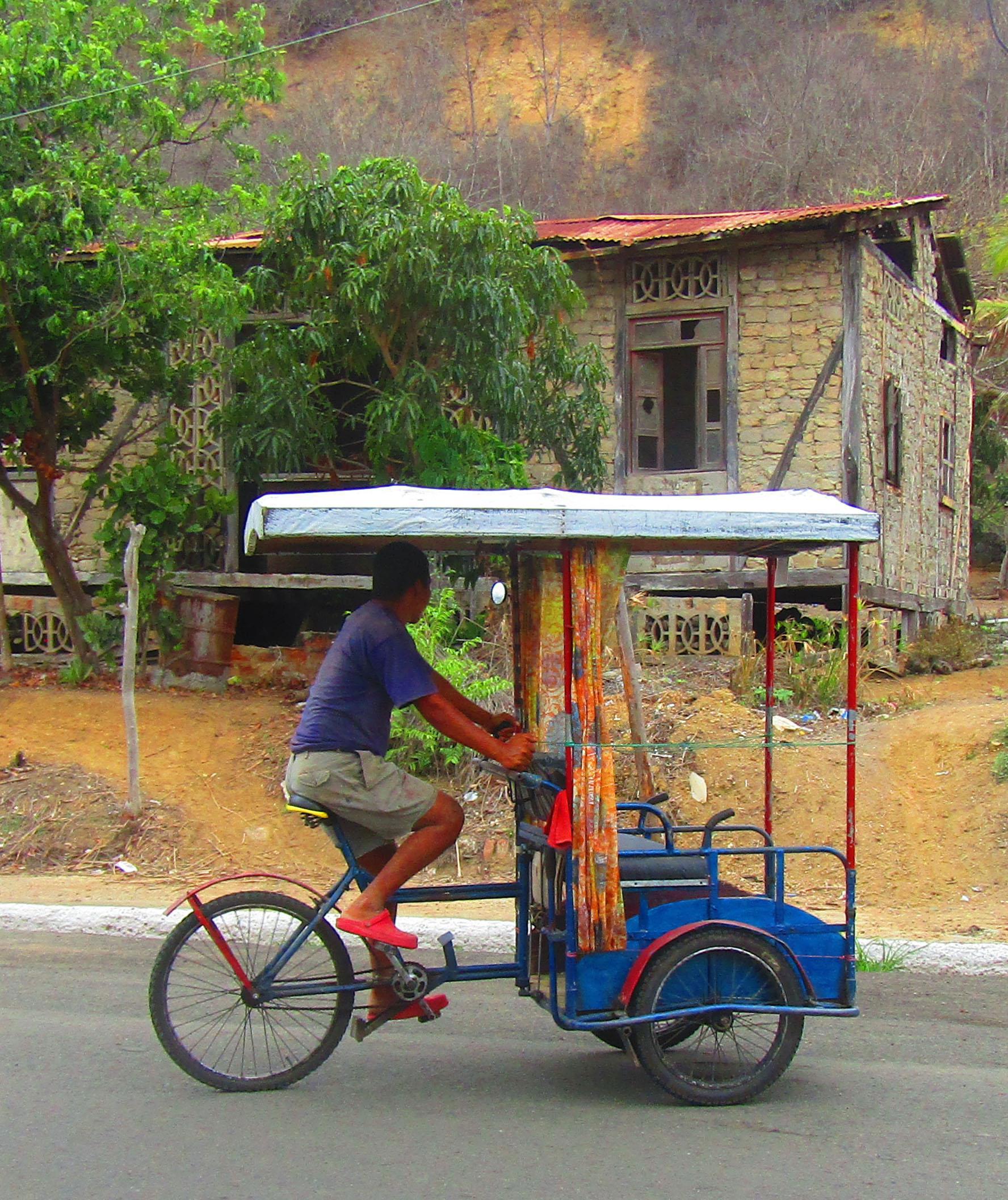 Эко-такси. Поскольку городок небольшой, поток тоже никакой, а дороги широкие, то курсируют постоянно. Лично не каталась: что-то внутри обозвало "буржуем" и восстало. Одно дело, когда мотор везет и совсем другое... в общем, вот. Образование советского человека до 3 класса школы не позволяет столь хамски эксплуатировать другого человека.))