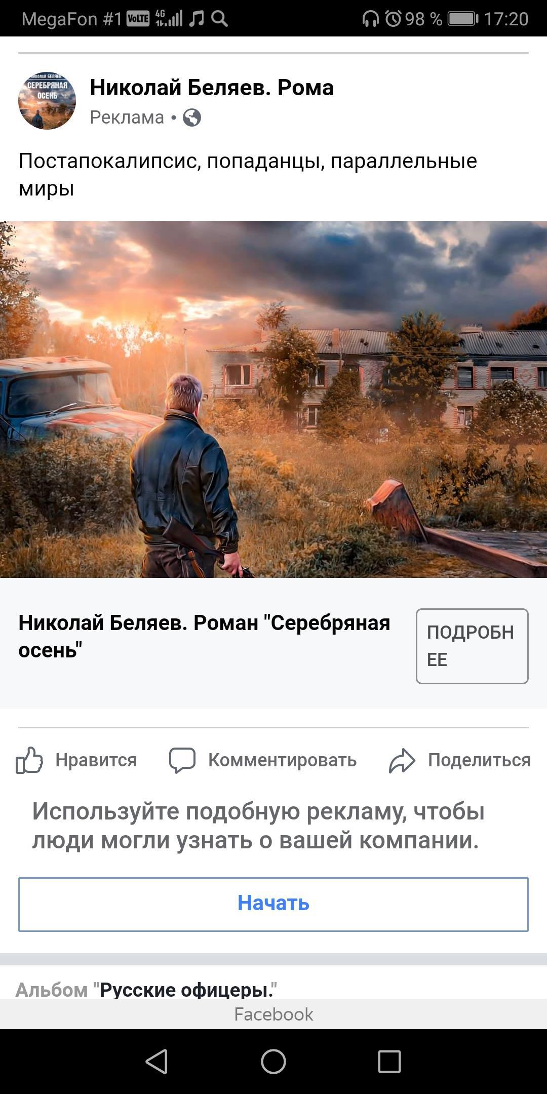 Автор: Николай Владимирович БеляевТолстый троллинг с фейсбука - когда тебе мало того что показывают твою же рекламу, которую ты сам и делал в порядке эксперимента, но ещё и предлагают соорудить себе такую же