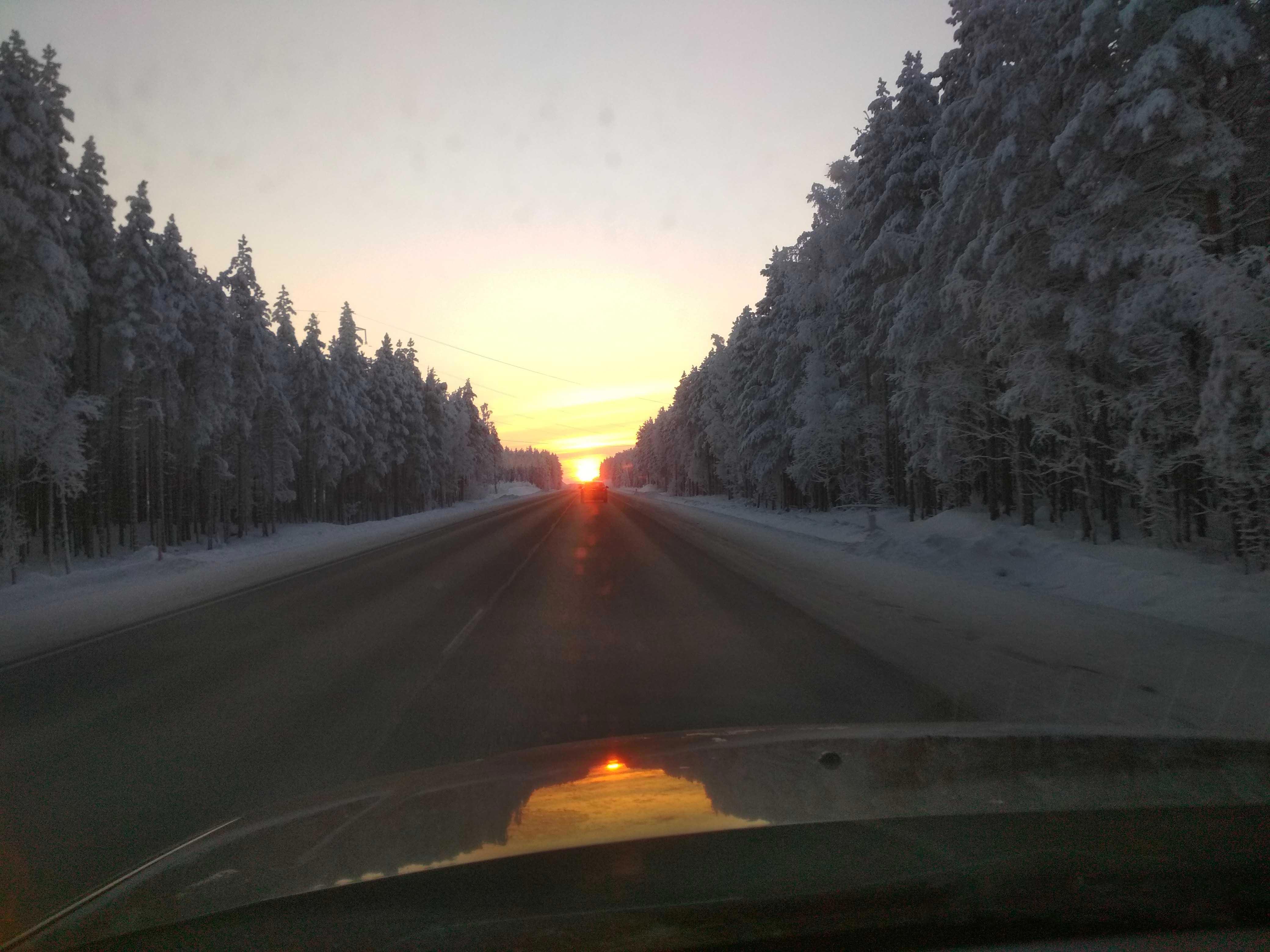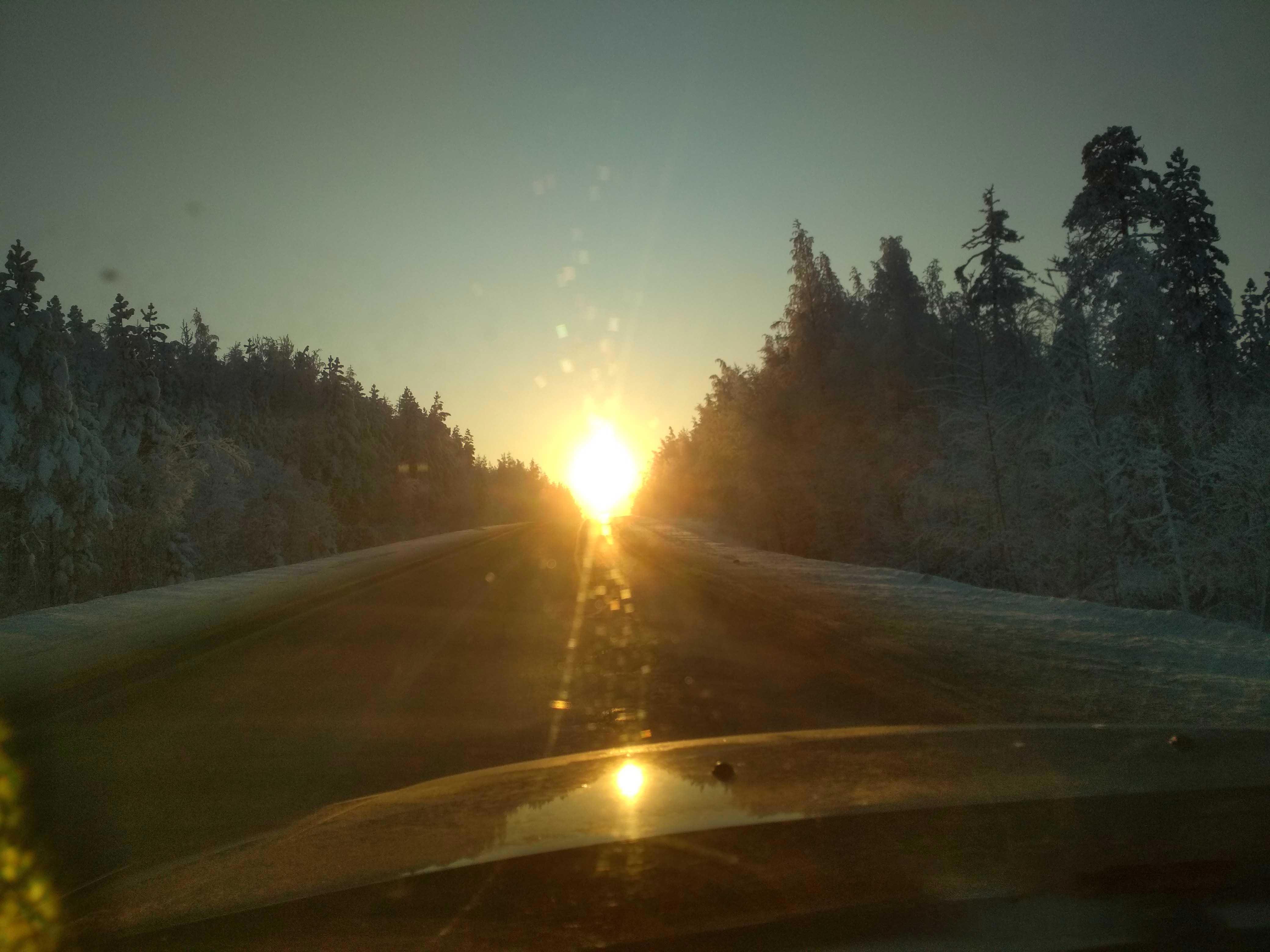 Отправившись затемно, ехать-то далеко, мы уже на рассвете вдруг увидели солнце (парадокс). Две недели его не видели. «На Юг едем» – догадались мы. И на радостях встали перекусить, как полагается, на обочине.