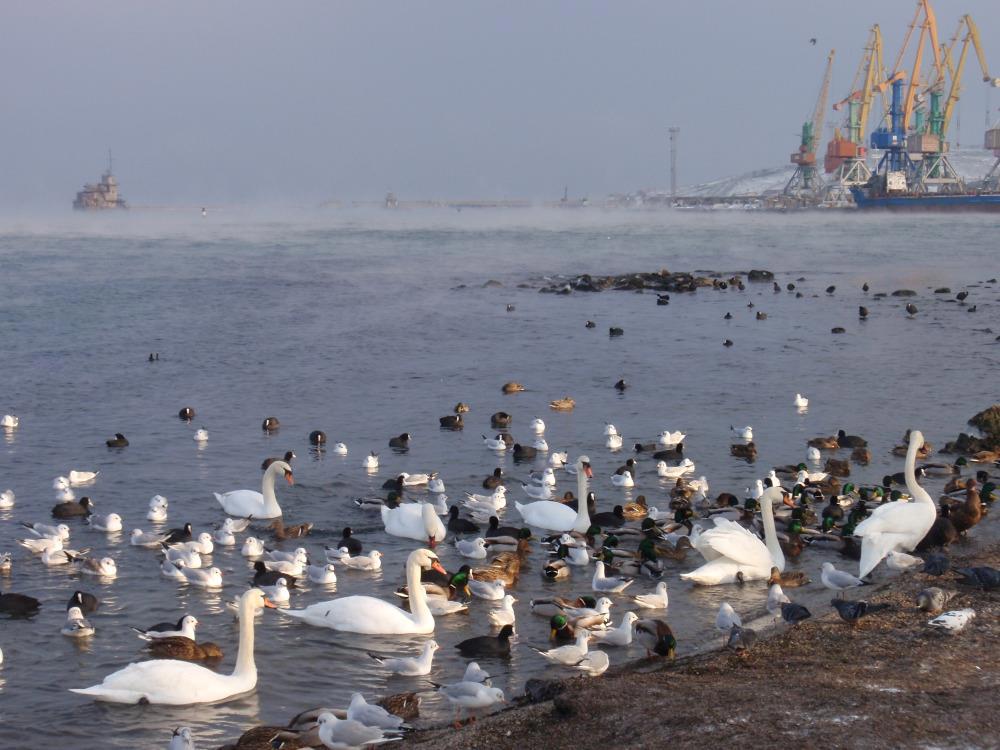 Пока залив сквозь снег и слякоть в морозном воздухе парит.