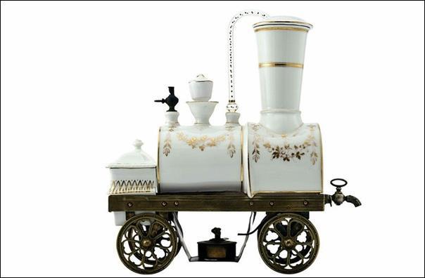 В 1861 году франко-итальянец Жан-Батист Тозелли запатентовал 40-сантиметровую кофеварку в виде паровоза.