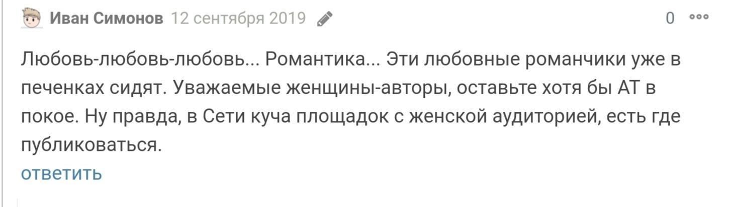 Я за то, чтоб АТ развивался не однобоко, как хочется оным персонажам, и в женский авторский талант ещё верую.