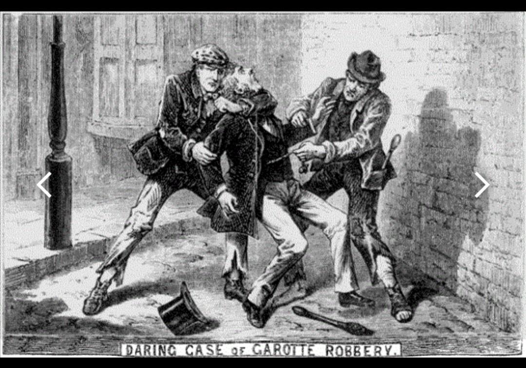 Особенно с учётом того, что полиция начала классифицировать регулярные ограбления и даже пьяные драки как Garrotting, доказывая, что многочисленные "удавочные" преступники успешно ловятся. Это похоже на то, как в 1830-х годах они часто представляли случаи кражи как “потерянную собственность”, чтобы создать впечатление, что эти преступления случались не так часто, как на самом деле. (Может отсюда и "растут ноги" о глупости лондонской полиции в рассказах о Шерлоке Холмсе и докторе Ватсоне