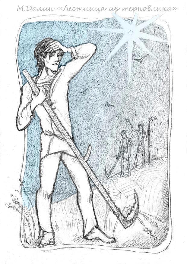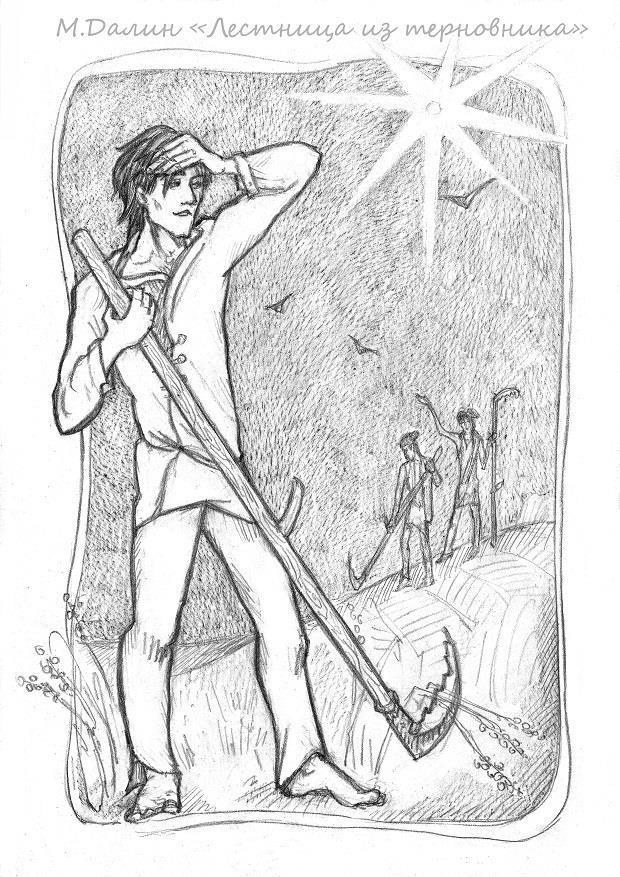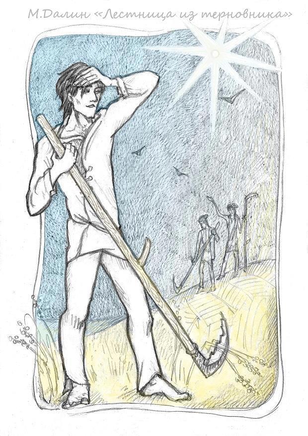 Новая часть - новый рисунок. Я решила идти последовательно, потому что ни одной проходной главы-сцены в "Лестнице" нет, они все зрительно выразимы и несут точный смысл, поэтому невозможно какую-то из глав пропустить и бежать дальше, к более "вкусным" и зрелищным.