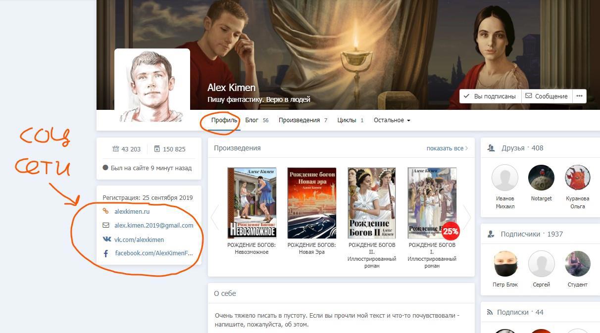 10. Даже если что-то из вышеперечисленного, вызывает у вас технические сложности, но вы хотите все же поддержать автора, то не нужно забывать о его социальных сетях. Почти все авторы в своем профиле публикуют ссылки на свои группы в ВК и ФБ, а зачастую еще и инстаграм. Если у вас есть возможность - подпишитесь на авторские социальные сети!