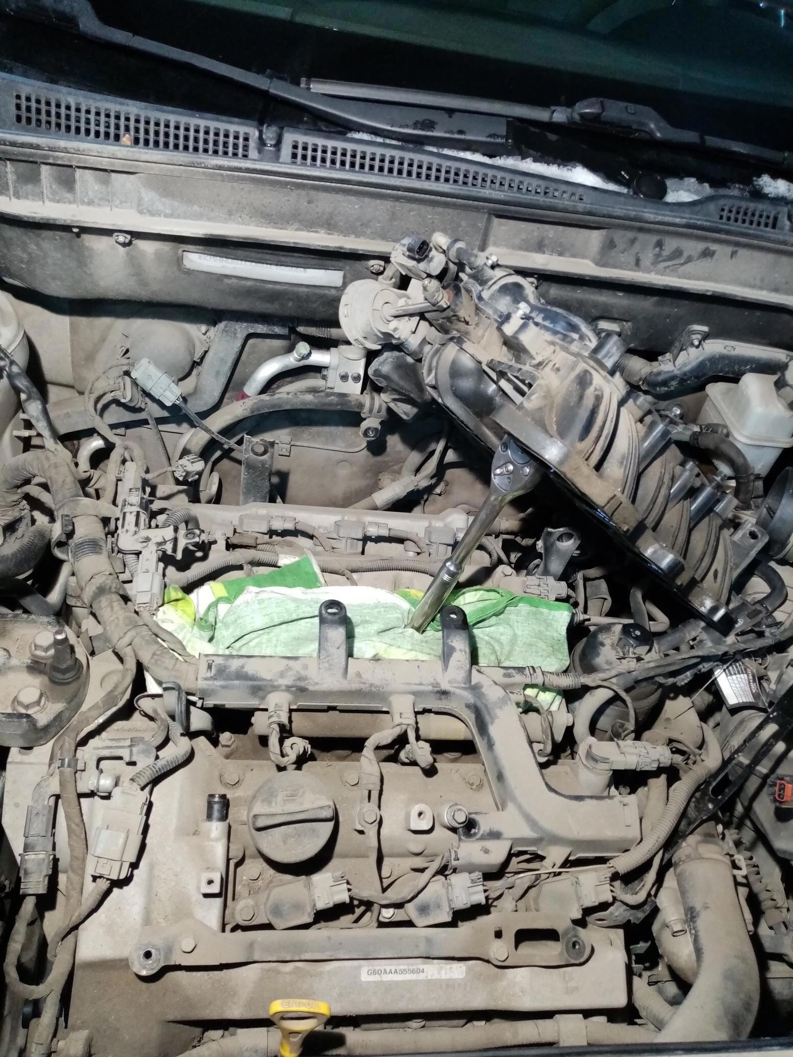 Пооткручивал всё лишнее, открутил кожух проводки и отодвинул в сторону, снял патрубок от фильтра до дросселя, отцепил шланги вакуума, открутил два болта опор коллектора, один с тыла, один под дросселем.