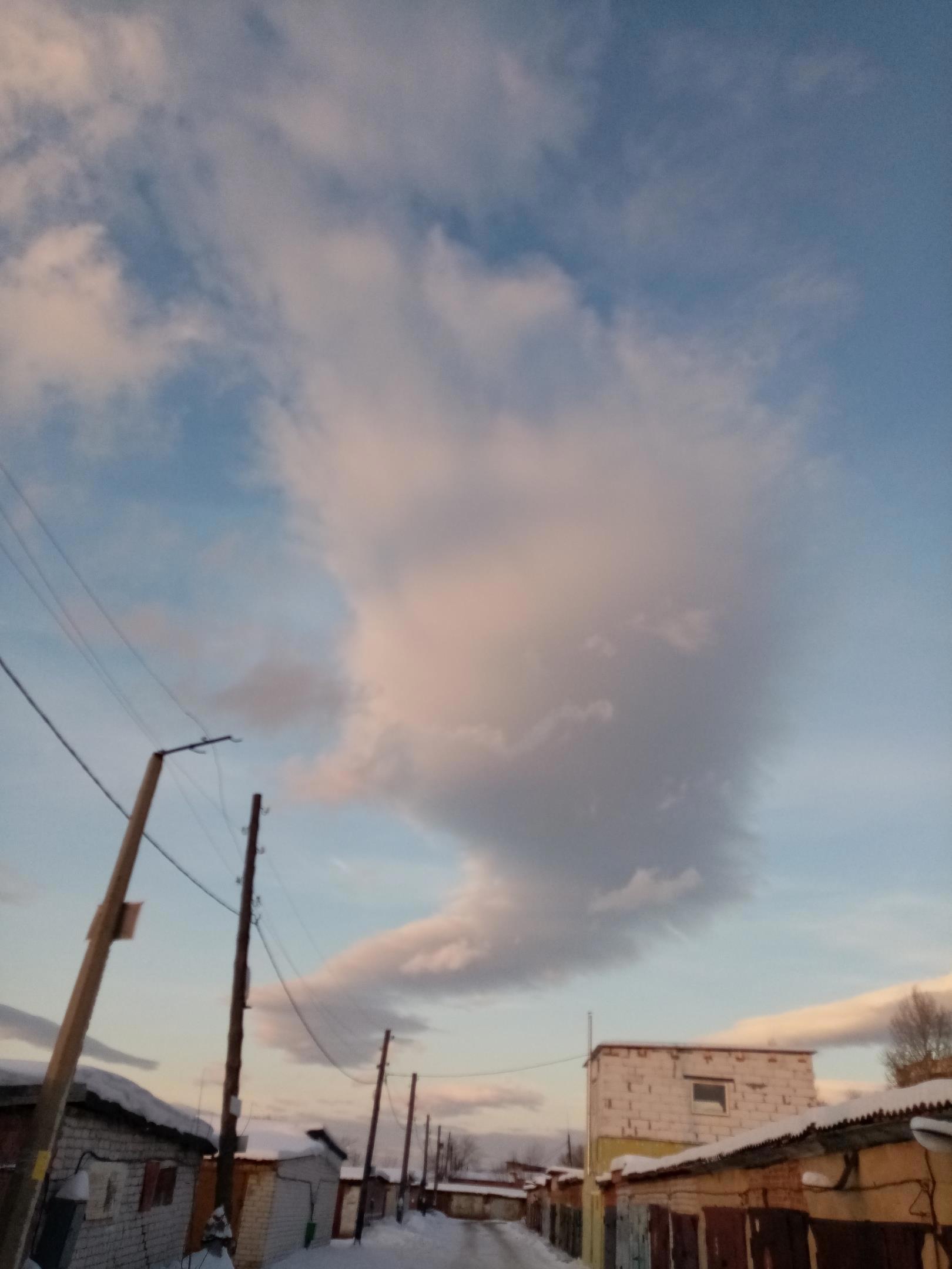 ...и ехать домой. Когда ставил машину в гараж, снял облако в форме торнадо.
