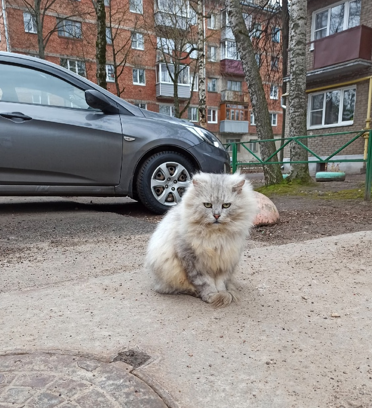 Подозреваю, что это была не первая попытка осчастливить животное мягкой посадкой. Потому кот, наученный опытом, немного потусил на газоне, пока добрые женщины не унеслись по своим делам. Ииииииииииииииииии... Залез обратно. Морду него была при этом торжествующая.