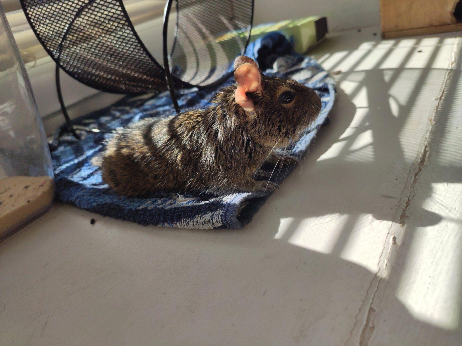 Автор: juliaУ меня живет чилийская белка, немного похож на тушканчика, дочка назвала Кексом. Эта мелочь не только прекрасно отзывается на свое имя, но и выполняет команды "кушать" и "домой". Издает множество разных звуков от воркования до возмущенный воплей, когда на улице орут воробьи чирикает им в ответ)) Покусал кошку, пока она пыталась понять, что это. В общем, знакомьтесь, Кекс, мой суровый чилиец.