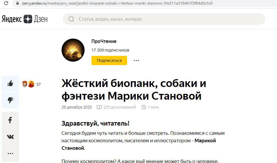 дзен ПроЧтение Сергея Бунеева 17,5К подписчиков ![]() | дзен Фантастика сегодня 4,8К подписчиков ![]() | |
