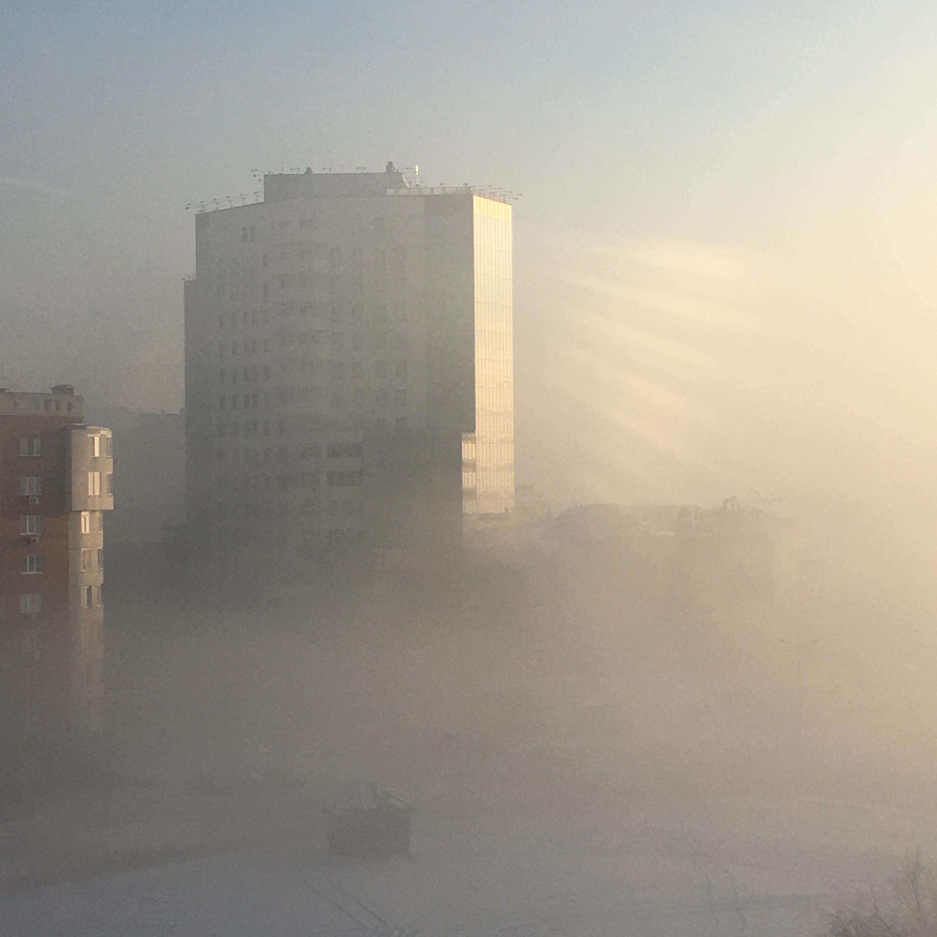 Сегодня на рассвете был туман. На какие-то минуты только что поднявшееся над горизонтом солнце отразилось от окон офисного здания напротив моего окна. Блики осветили туман, сделав его полосатым. Полосатый туман - кто бы поверил? Любой скажет, что фото обработано. Ни фига - напрямую с телефона.