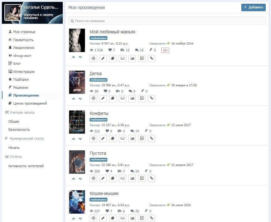 Автор: Наталья СудельницкаяНекоторые тут хвастаются циферками статистики - просмотров их произведений. Решила я глянуть и поржала. Помимо того, что, как уже многие замечают, рассказы тут не любят, видно некоторую закономерность. Смотрите: