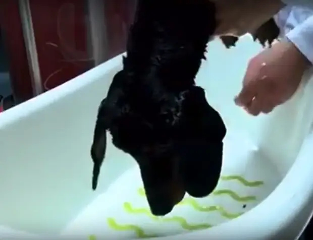 Эксперимент провели пару лет назад. Пёселя на глазах у изумленной публики опустили в емкость со специальной жидкостью. Собака не захлебнулась — через несколько минут ее достали живой, здоровой и даже не сильно обозленной. Кашляла только долго.