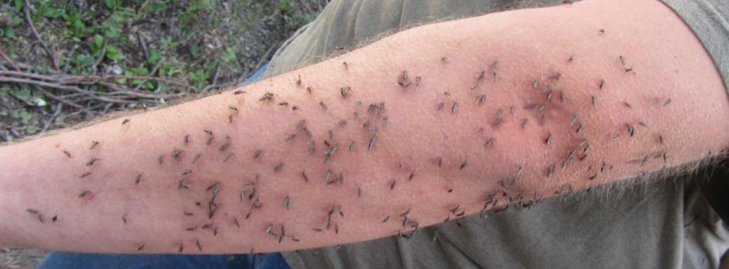 Итак, снова по-порядку. Разберем трудности, которые с дивана не видны. Начнем с самого легкого. Гнус. Кое-как сия радость описана у Джека Лондона в его описаниях историй об освоении Аляски. Но именно что кое-как с тем еще переводом. В чем тонкость... Вечная мерзлота. Это когда слой почвы 40-50 см а ниже - вымерзшая в камень земля вперемешку с теми же камнями. Сия "субстанция" не сильно-то уступает камню по твердости, с которым собственно и перемешана. Вода не уходит долго, соответственно лужи, озерца, болота. А где они - там и гнус. И если они везде - то и гнус - везде. И не надо думать что это то, что вы прочувствуете в европейских лесах. В европейских лесах его в сравнении считайте и нет вообще. Если безветрие, то в считанные минуты они покрывают тело едва ли не полностью. Типа такого - норма (фото с другого Севера, но на Колыме их как бы не поболе):