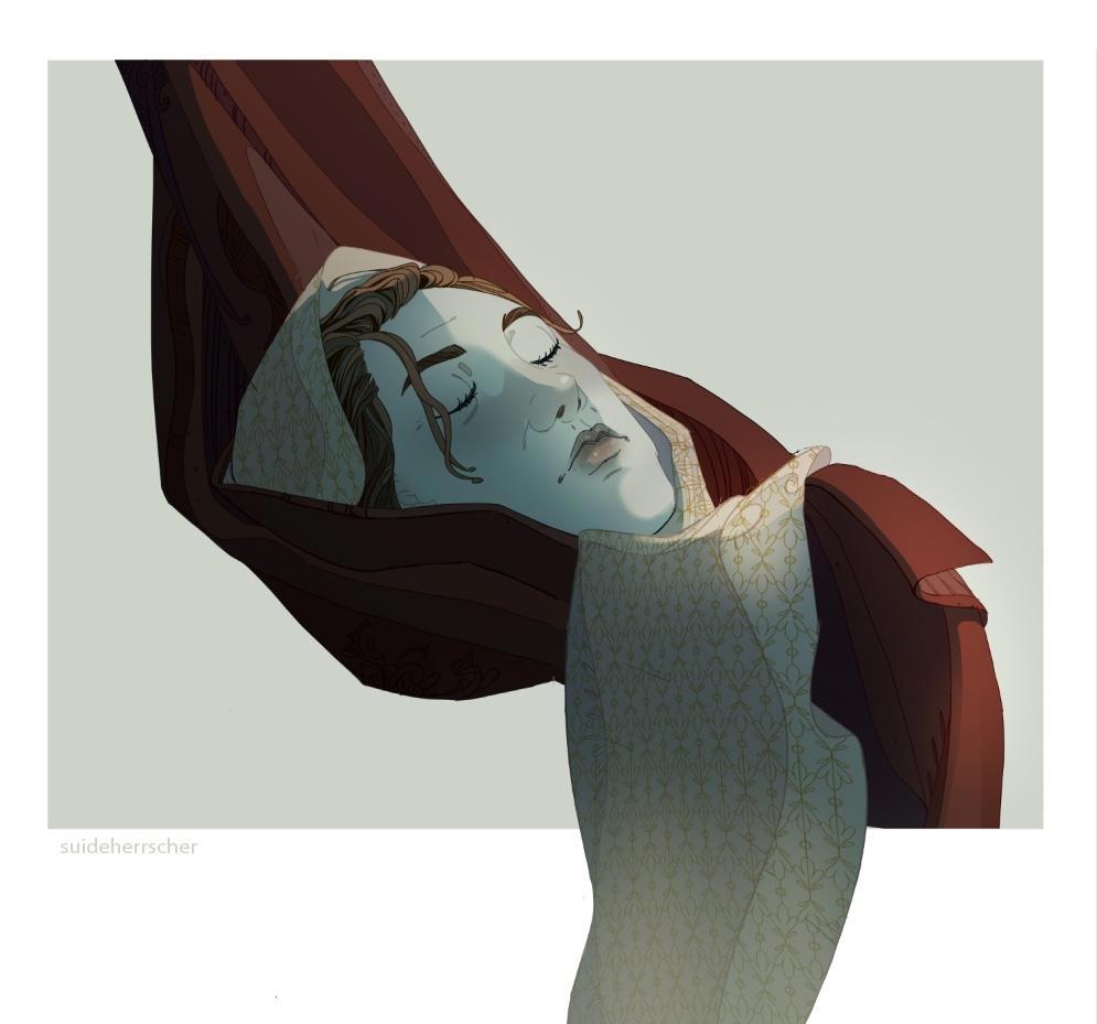 Не обошлось и без отрезанных голов, как и в тексте, так и в иллюстрациях. Голова Маргариты, нарисованная Suide Herrscher