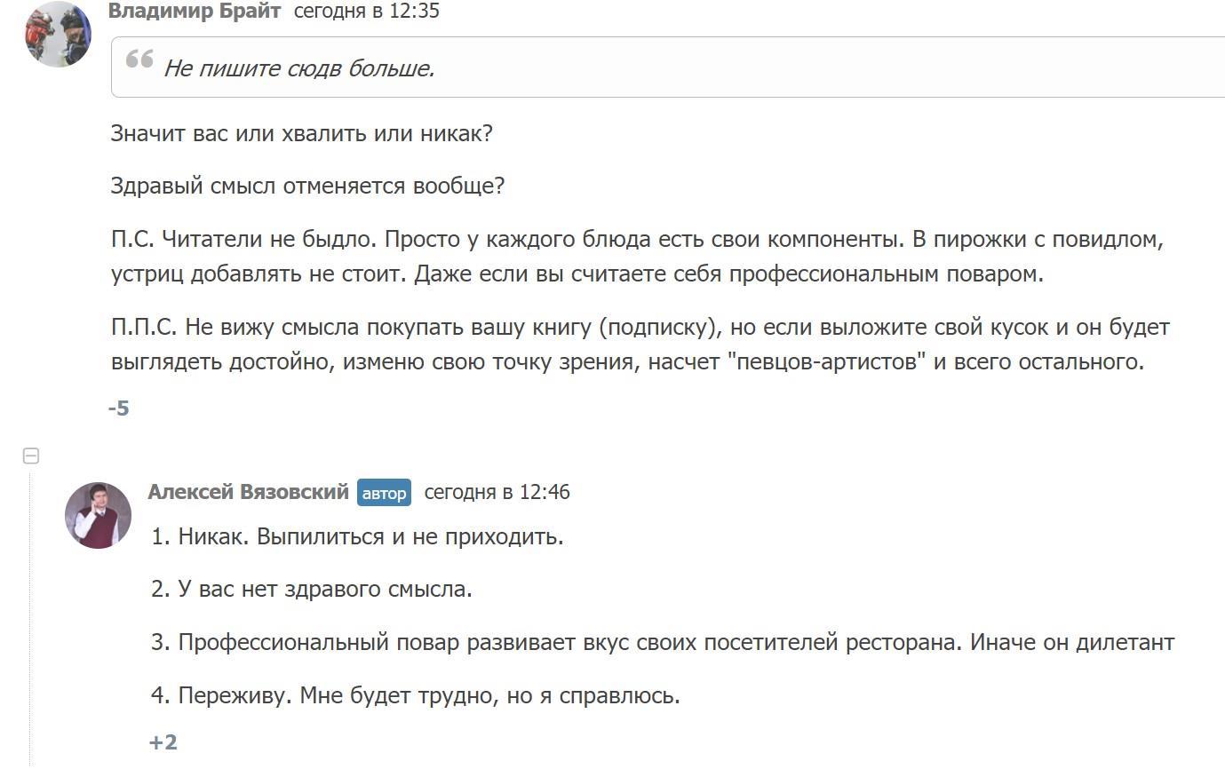 Автор: Владимир БрайтТворческие люди – особые. В свое время встал грудью на защиту чести и достоинства Алексея, но даже былые заслуги не помогли. Меня в очередной раз забанили.