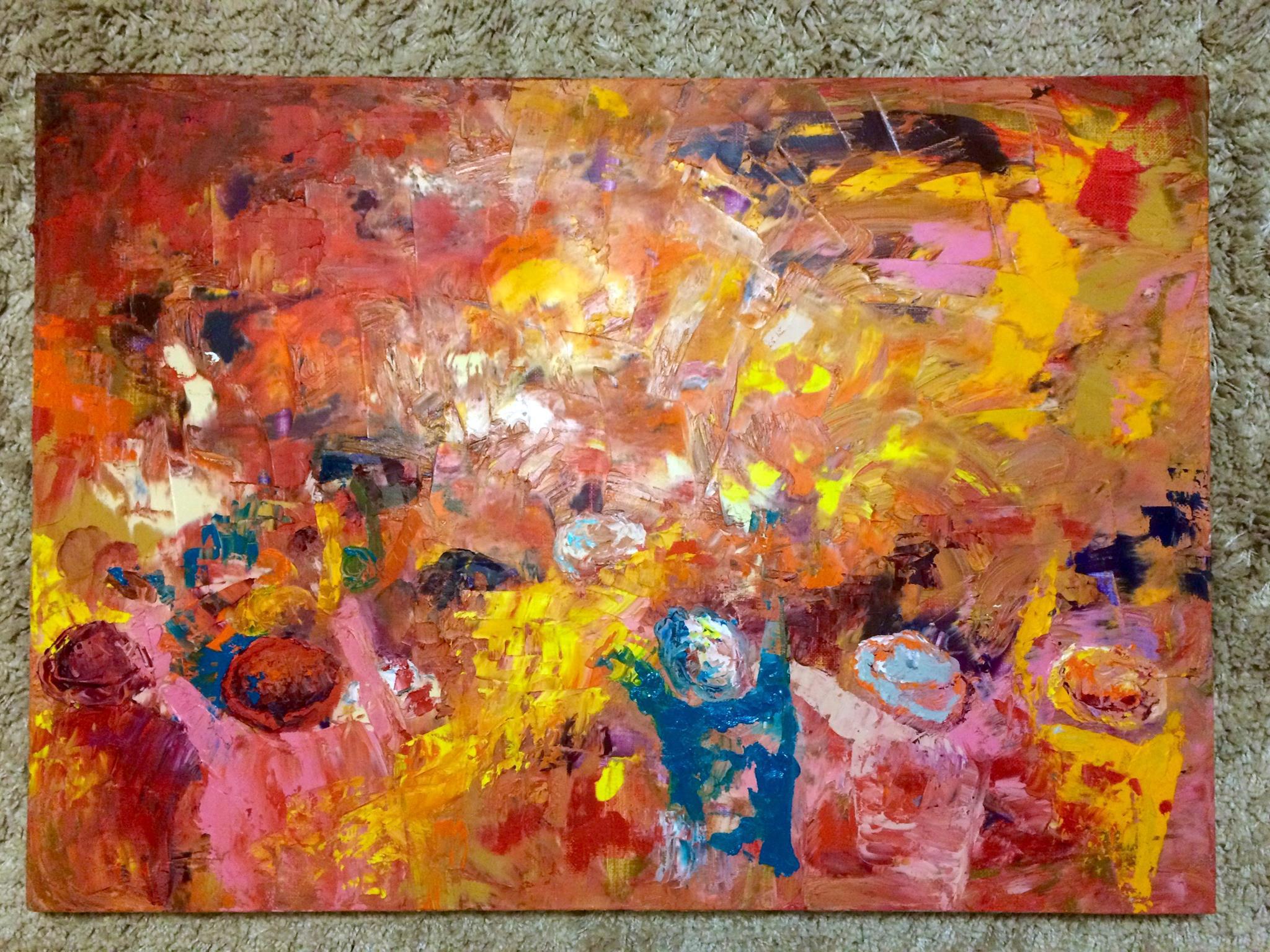 У меня был всего один лот, который внезапно вызвал довольно бурный отклик у аудитории но не потому, что десять лет назад были в моде темные и философские вещи, а тут буйство красок и сумасшедшая фактура, которая вот-вот "свалится" с холста...
