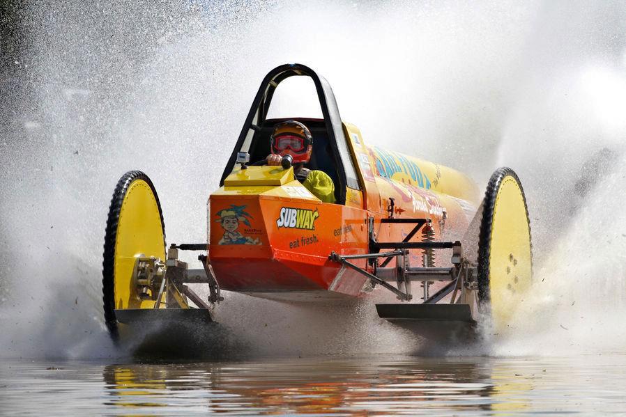 Есть и другие места, где гребные колёса используются до сих пор. Иногда это немного необычно и непривычно. Все знают, что колёсный привод – это медленно. Да, но не всегда. Вот гонки колёсных… даже не знаю, как их назвать. Скажем так: колёсных транспортных средств по воде:
